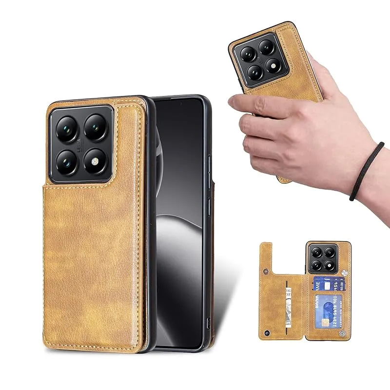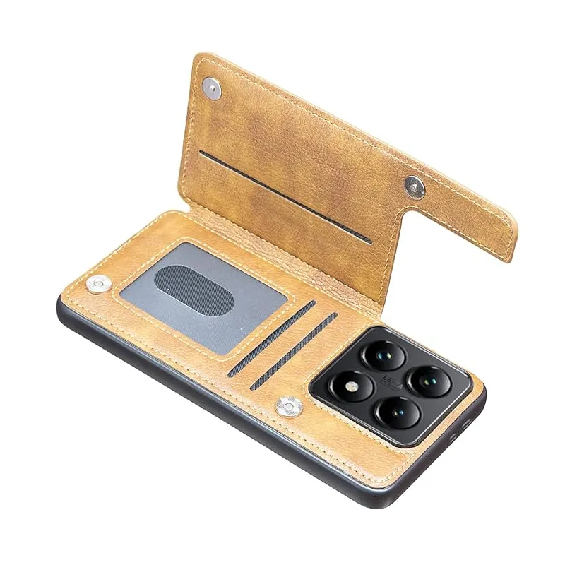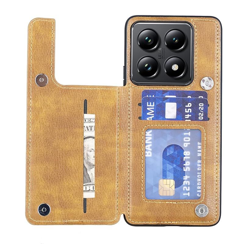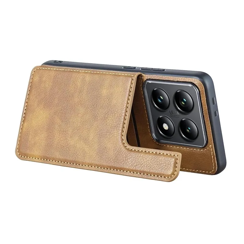 【新品】 for Xiaomi 14T Pro ケース スタンド機能 ケース ICカード収納 カード 背面カード収納 左と右の電話ケースを反転、シンプルなレトロなファッション、防水と防汚電話ホルダー、多機能財布収納付き、PUレザー、TPUソフトインナー(ブラウ