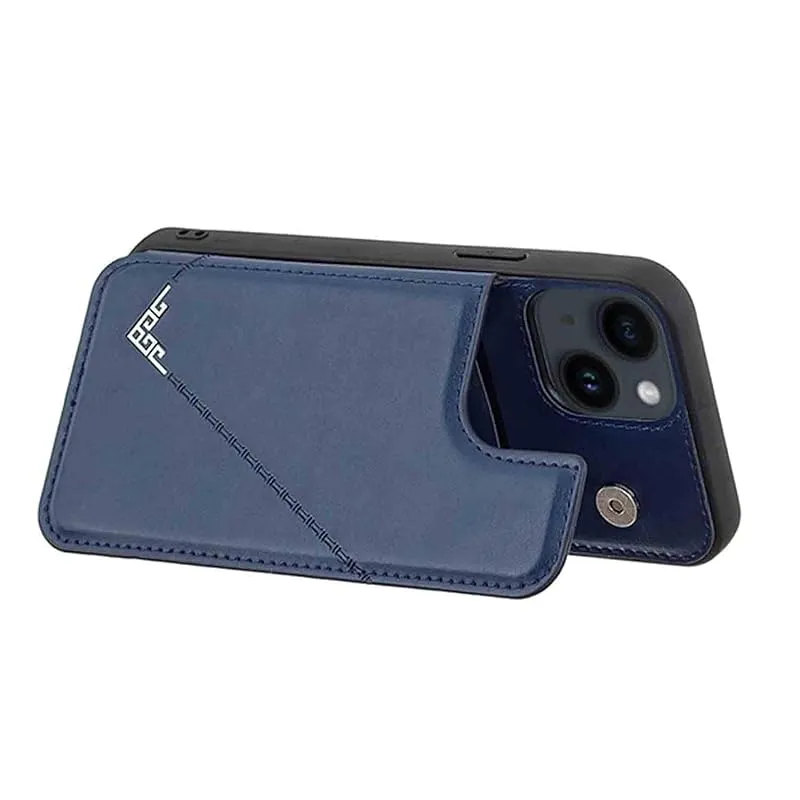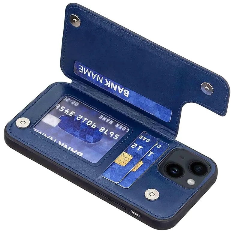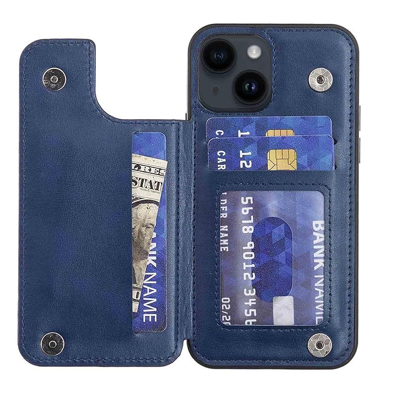 【新品】 for iPhone 14 plus ケース スタンド機能 ICカード収納 背面カード収納 左と右の電話ケースを反転、防水と防汚電話ホルダー、多機能財布収納付き電話、PUレザー、TPUソフトインナー (ブルー)