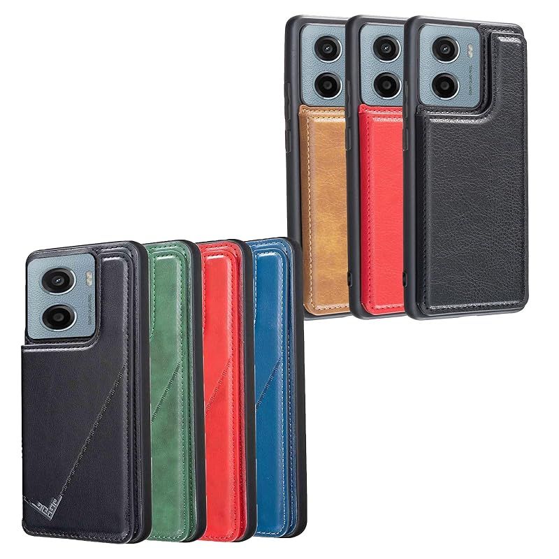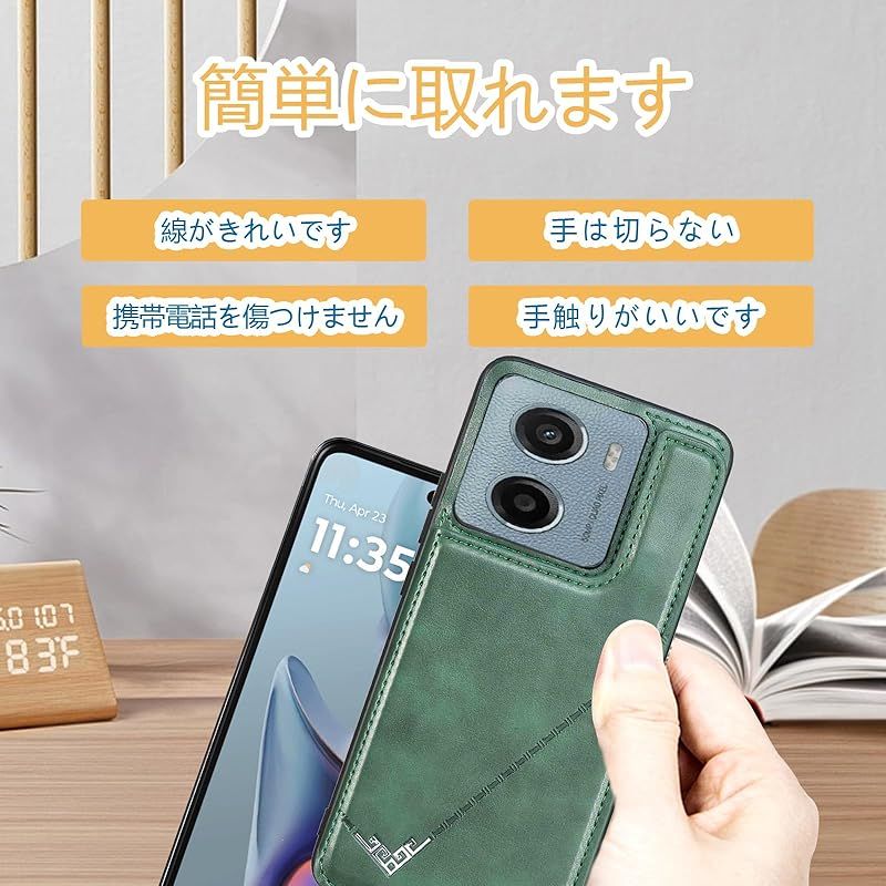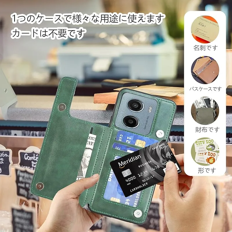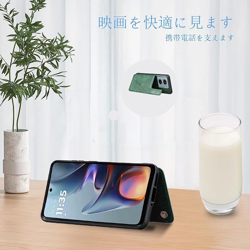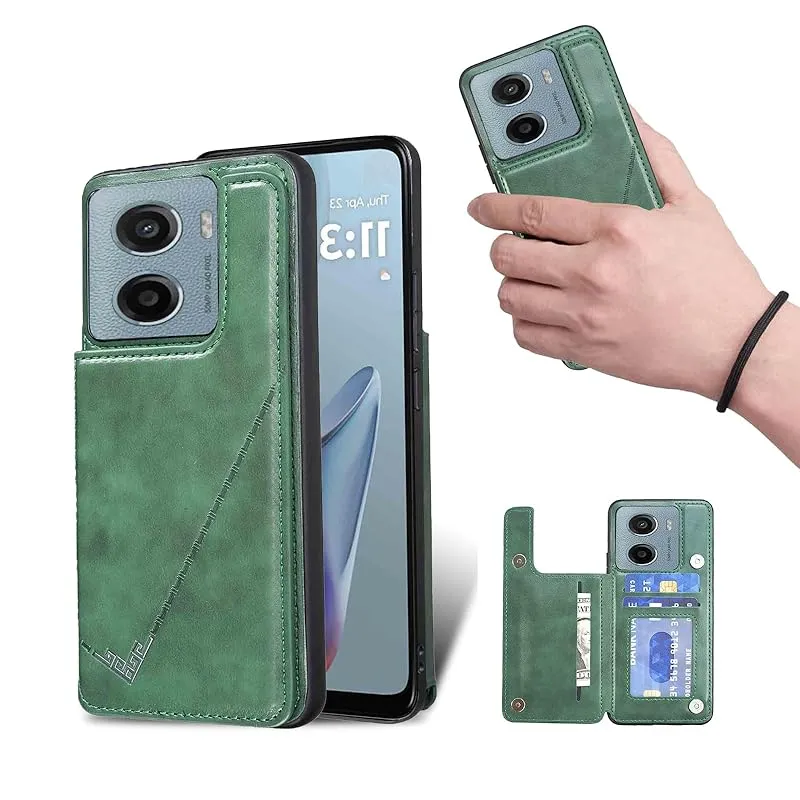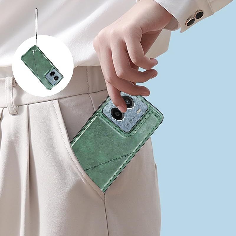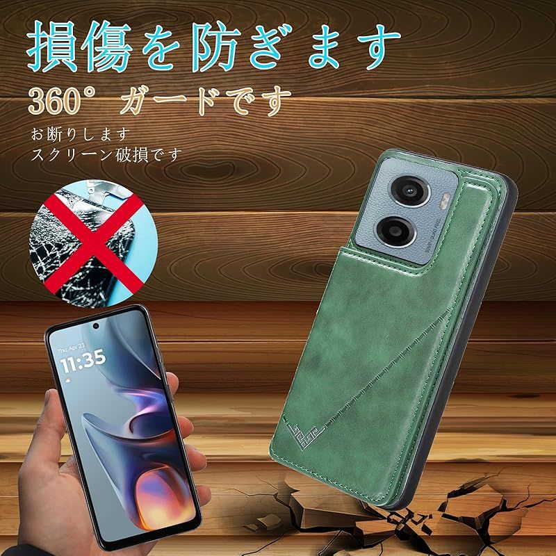 【新品】 for Moto G05 / Moto E15 ケース スタンド機能 ICカード収納 カード収納 シンプルなレトロなファッション、防水と防汚、多機能財布収納 (グリーン)