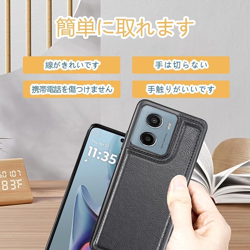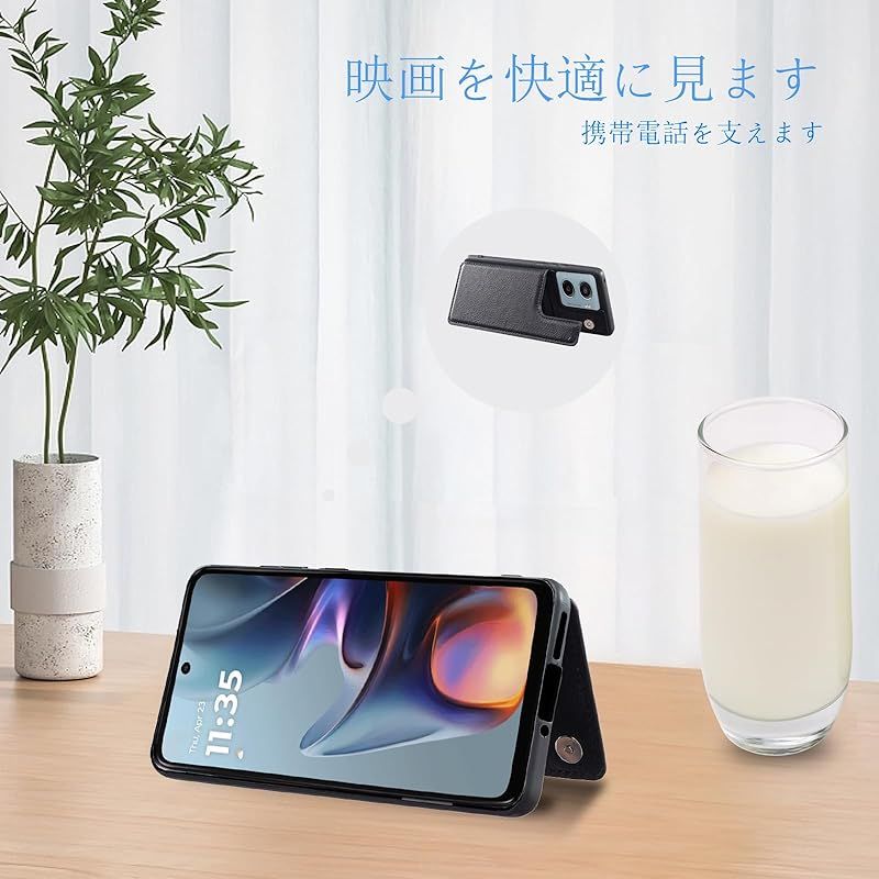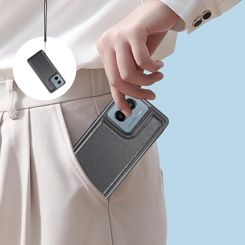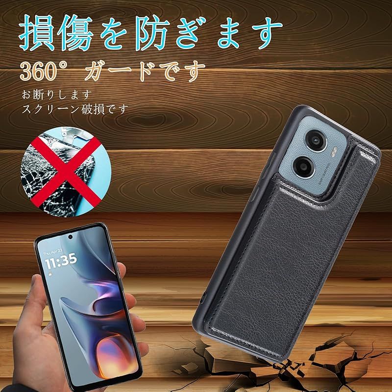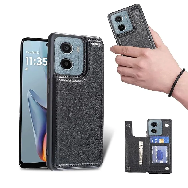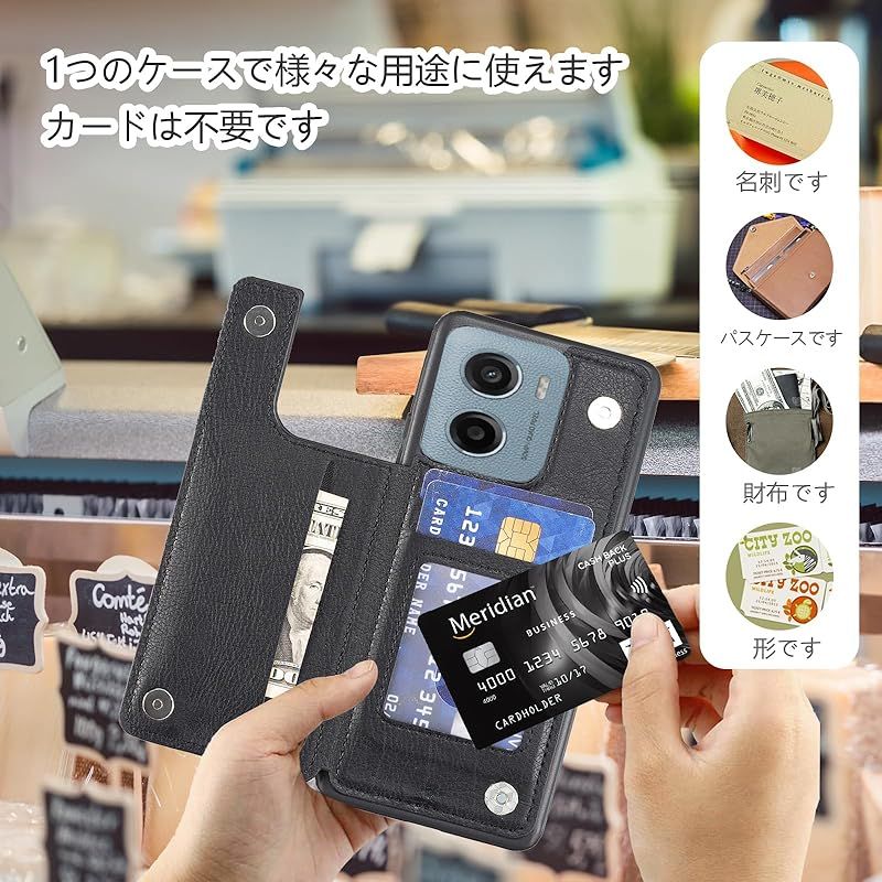 【新品】 for Moto G05 / Moto E15 ケース スタンド機能 ICカード収納 カード収納 シンプルなレトロなファッション、防水と防汚、多機能財布収納(黒)