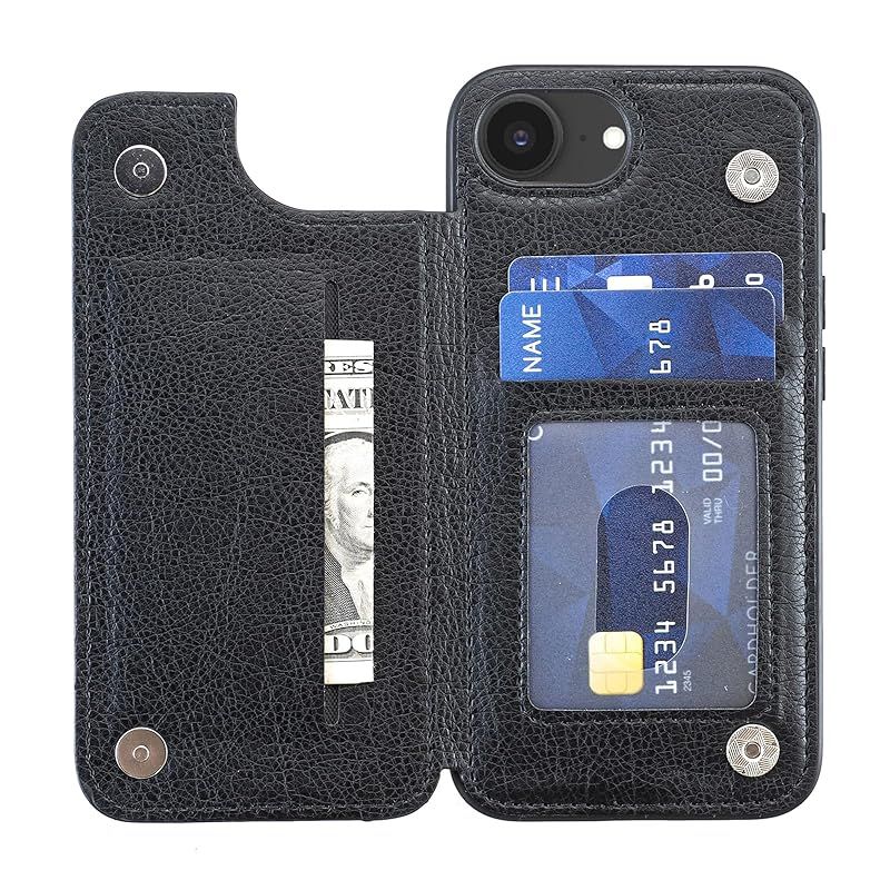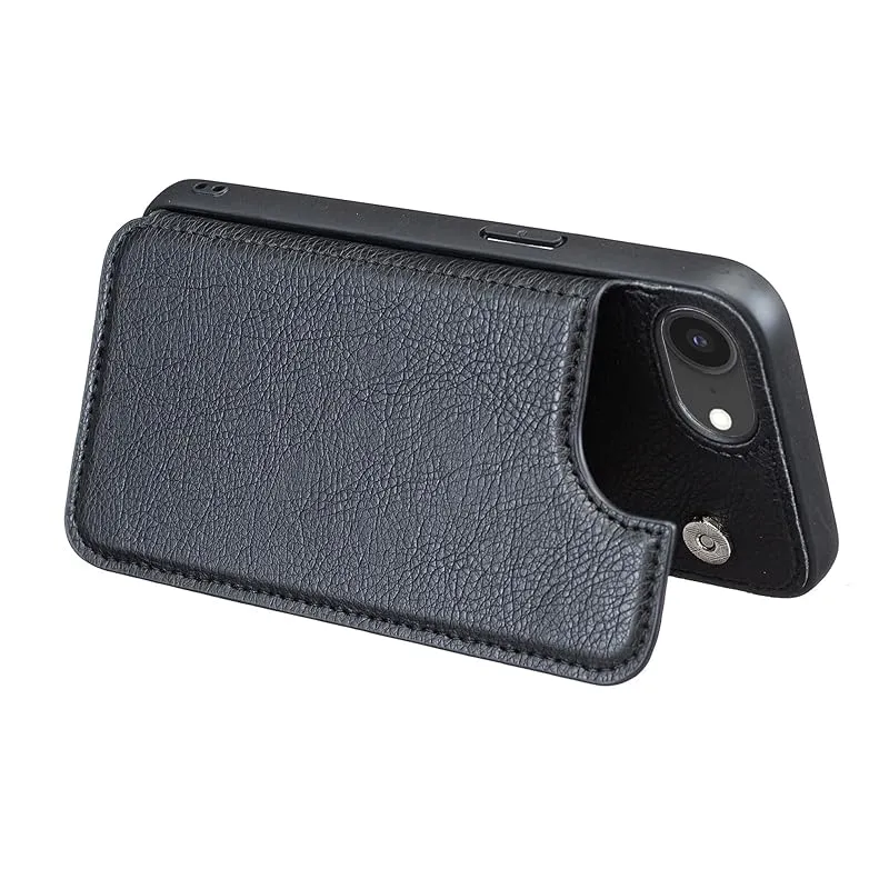 【新品】 for iPhone 17E / iPhone 16E ケース スタンド機能 ICカード収納 カード収納 シンプルなレトロなファッション、防水と防汚、多機能財布収納(黒)