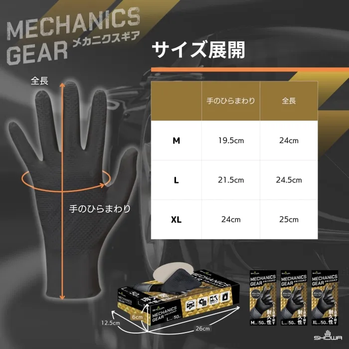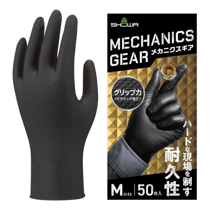 【新品・2営業日で発送】ショーワグローブ SHOWA ニトリルゴム製使いきり手袋(パウダーフリー) メカニクスギア50枚入 ブラック M (NO709BM 3308)