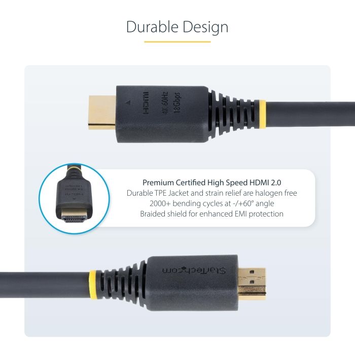 【新品・2営業日で発送】STARTECH.COM HDMI 2.0ケーブル/5m/4K60Hz/プレミアム認証/オス・オス/BK(HDMI2-CABLE-4K60-5M)