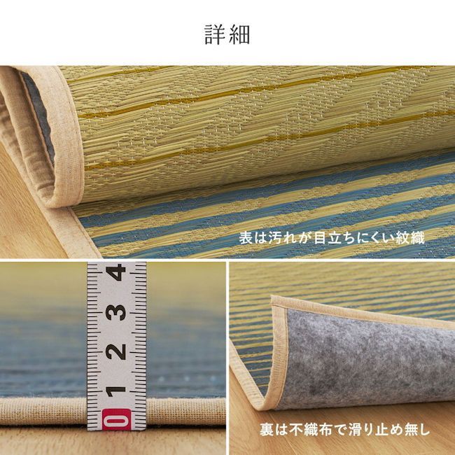 【材質】い草100%紋織。裏面:不織布。四方縁