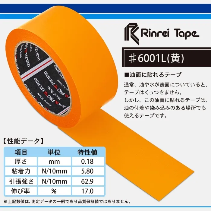 【新品・2営業日で発送】リンレイテープ 油面に貼れるテープ 6001L 50×20 黄 (6001L50X20Y 8224)