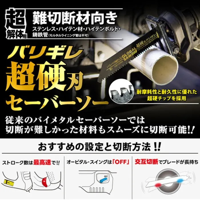 【新品・2営業日で発送】モトユキ セーバーソーブレード グローバルソー 超硬刃バリギレ 全長225mm (TE2258 7121)