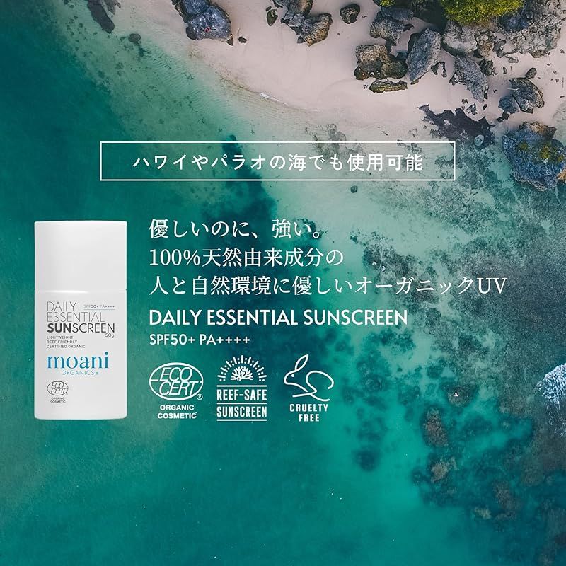 【商品詳細】 ブランド:moani ORGANICS 商品種別:全身用日焼け止め 商品名:モアニ・オーガニクス 日焼け止め 乳液 50g (顔・からだ用) SPF50+ PA++++ UV耐水性★★ (レモングラス&ラベンダー) 製造元:moani organics (モアニ・オーガニクス)