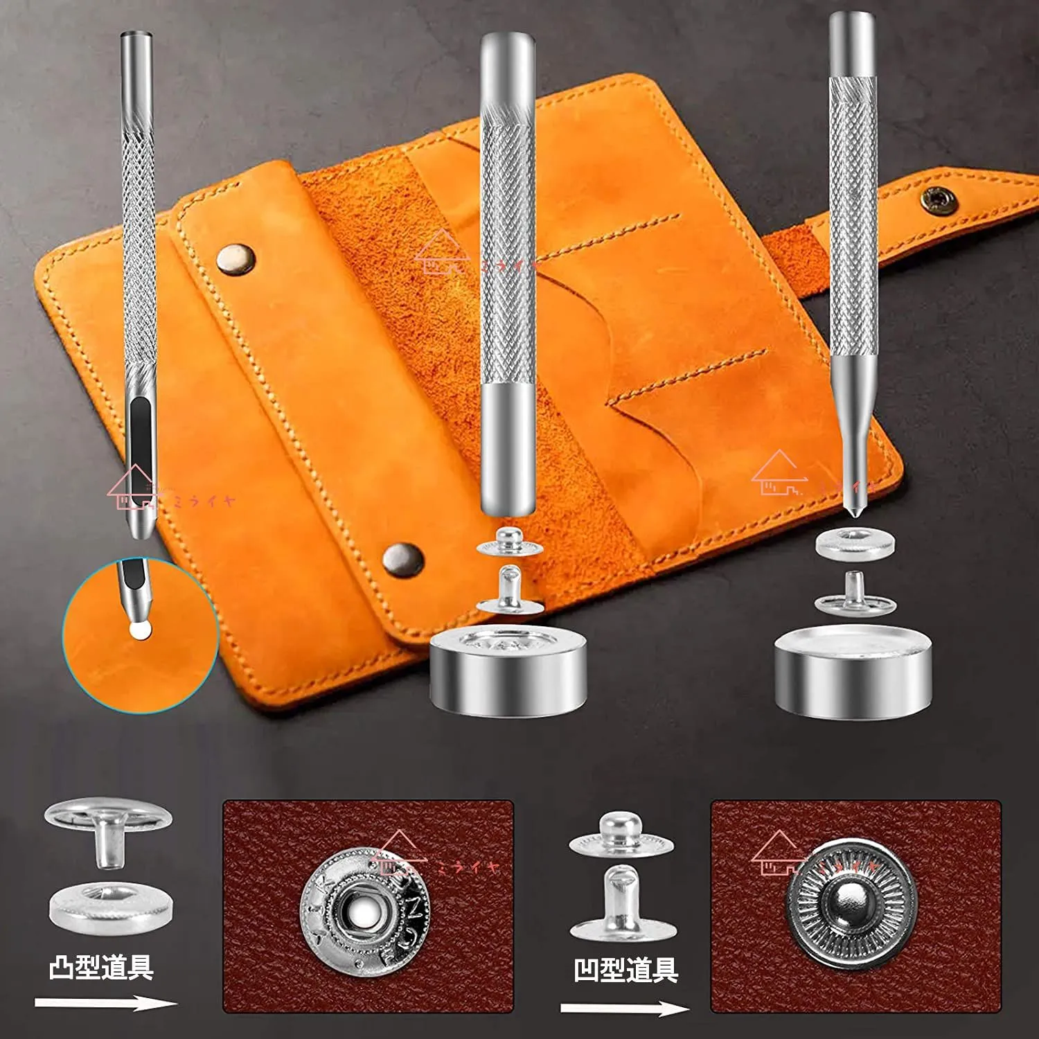 【取り付け簡単】:ホックと打ち具の組み合わせが大変便利です。使用方法は大簡単で、初心者からプローまで革製品などのハンドメイド作品を簡単に取り付けられます。