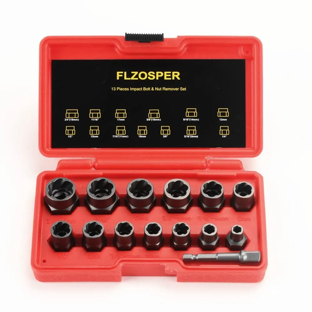 【数量限定】ねじボルト箱 潰れたボルト ツイストソケット ナット取り外し インパクトボルト&ナットリムーバーセット ナットソケットセット ナット抽出ソケット ナットツイスター14点セット