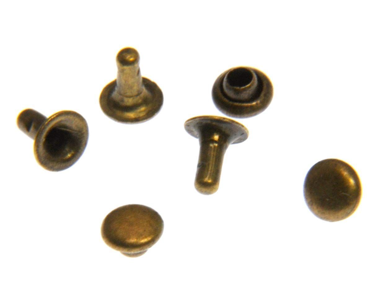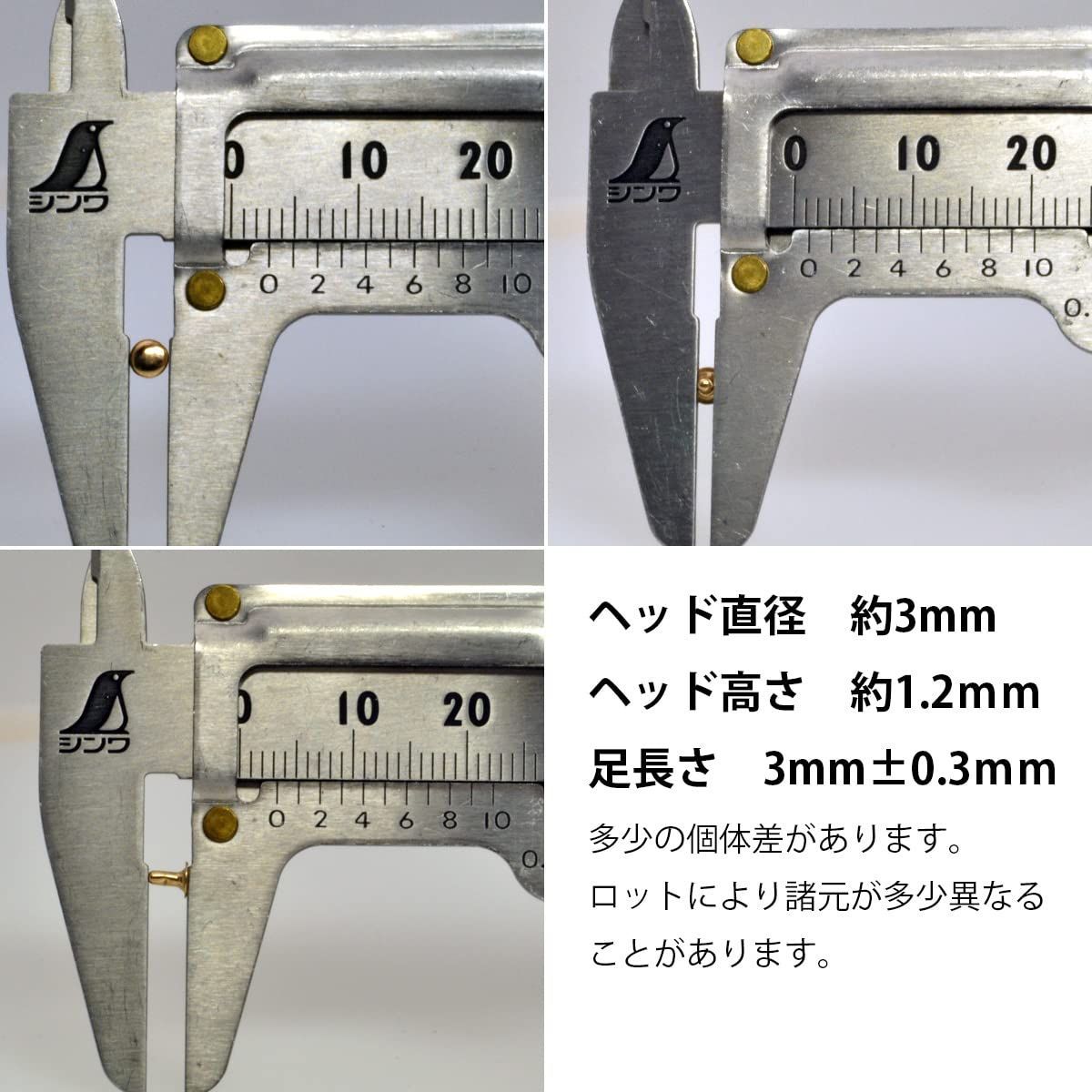直径がわずか3mmの片面カシメリベット100組です。ドールメイキングやレザークラフトのパーツとしてご使用ください。