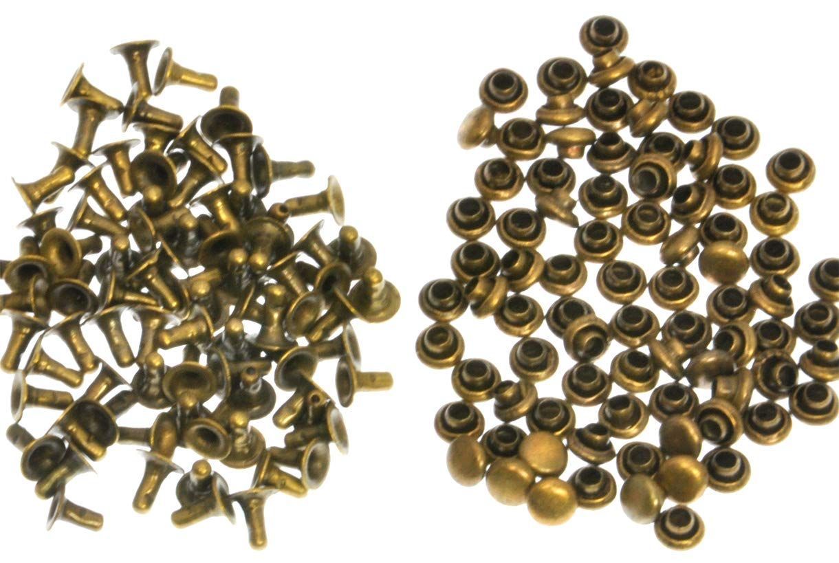 starPG ミニチュア 片面 カシメ リベット 3mm 100個 ドールメイキング レザークラフト DIY パーツ (アンティークゴールド 工具なし)