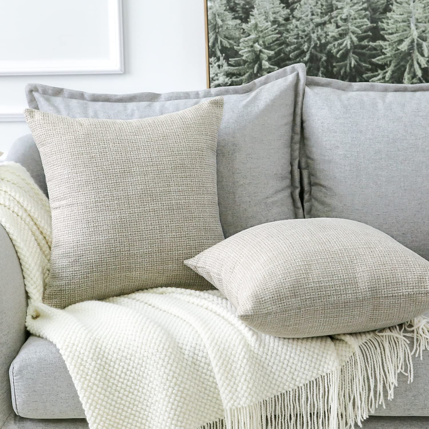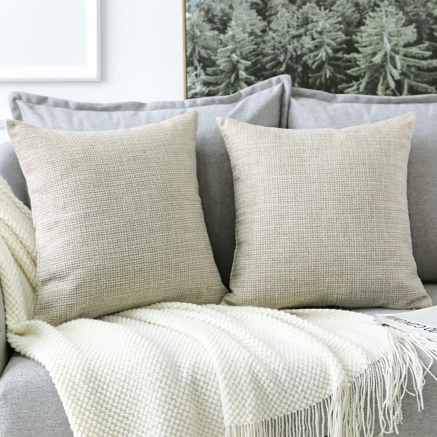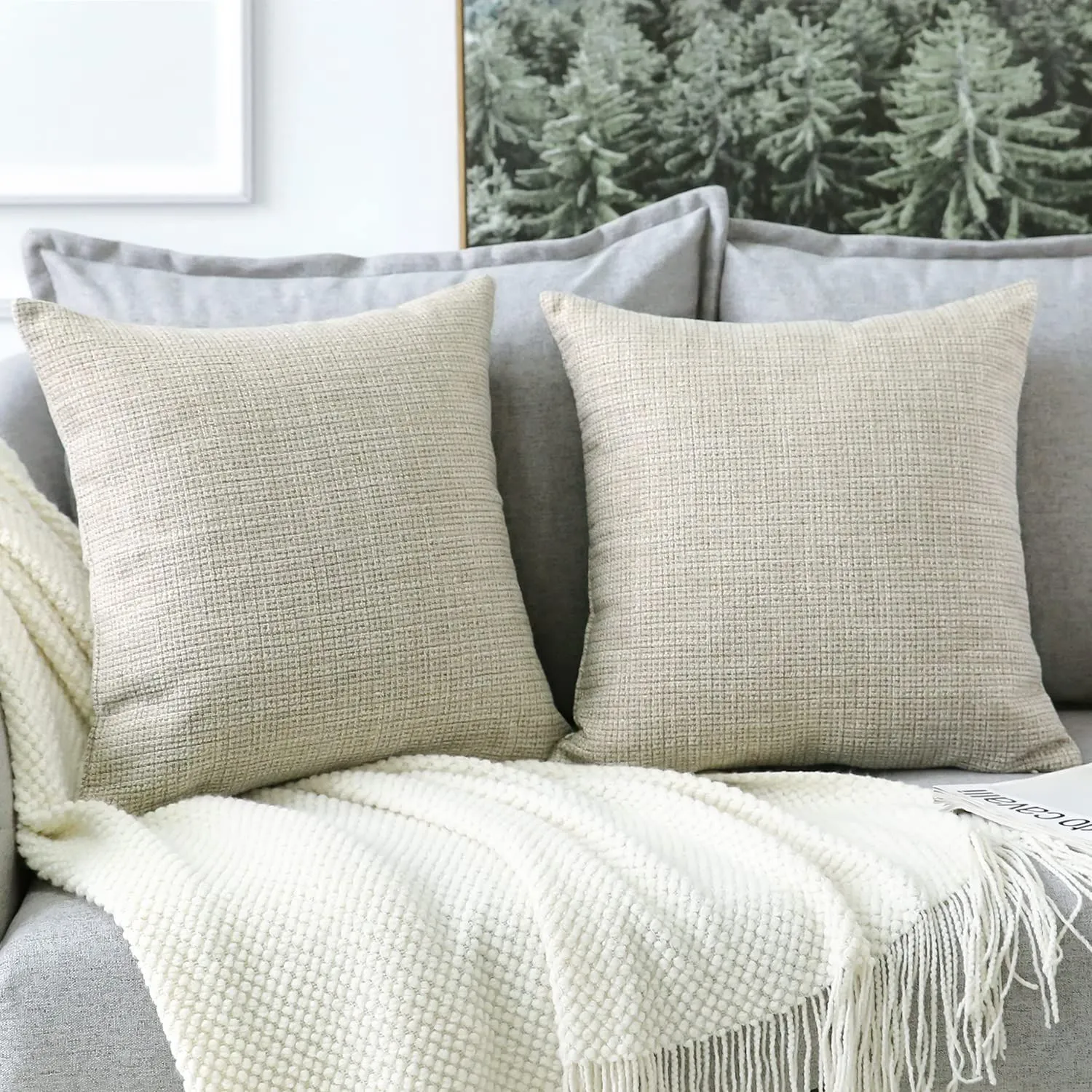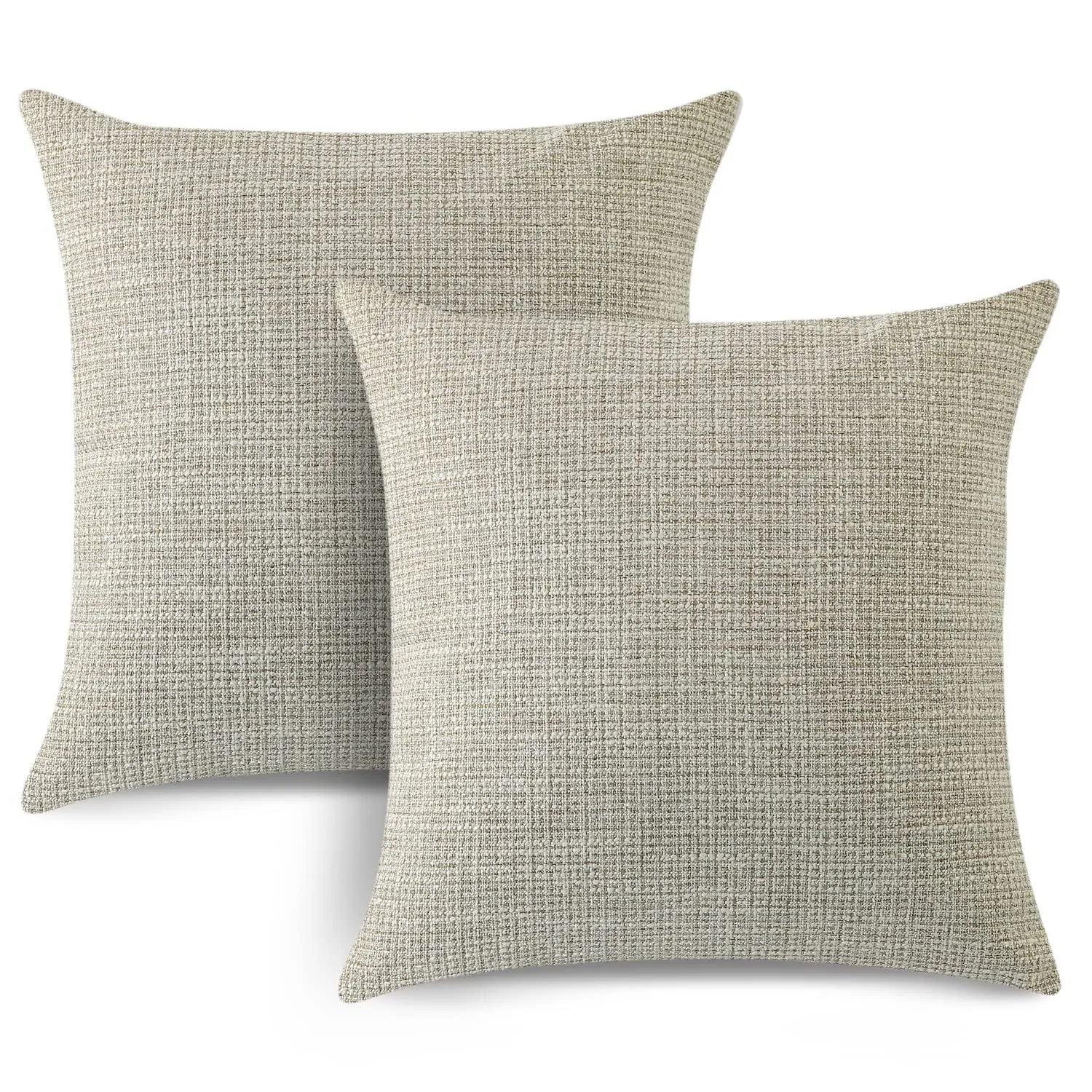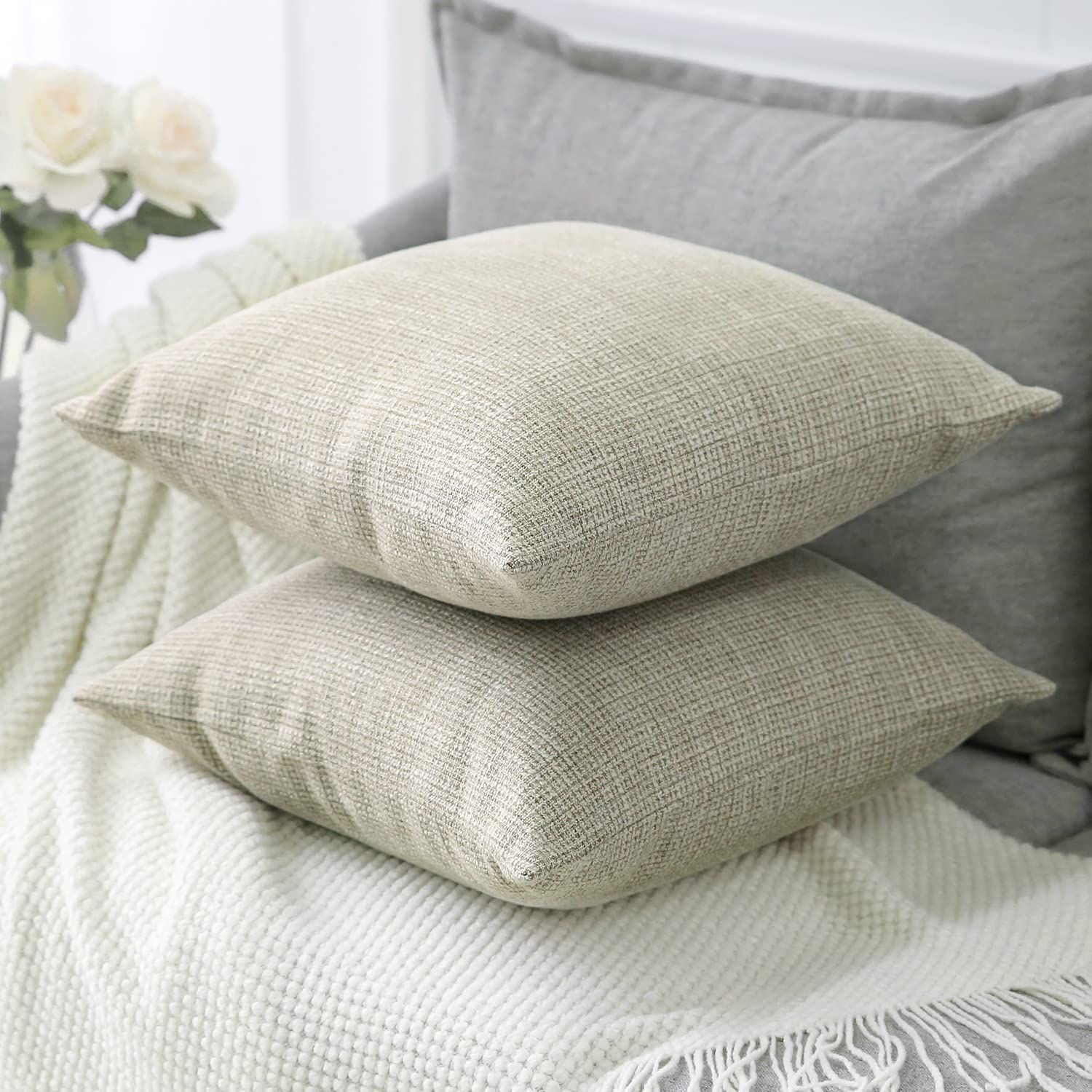 Otostar クッションカバー 北欧 2枚セット 麻 無地 おしゃれ 可愛い モダン ファスナー インテリア 装飾用ピローカバー (45x45cm, カーキ色)