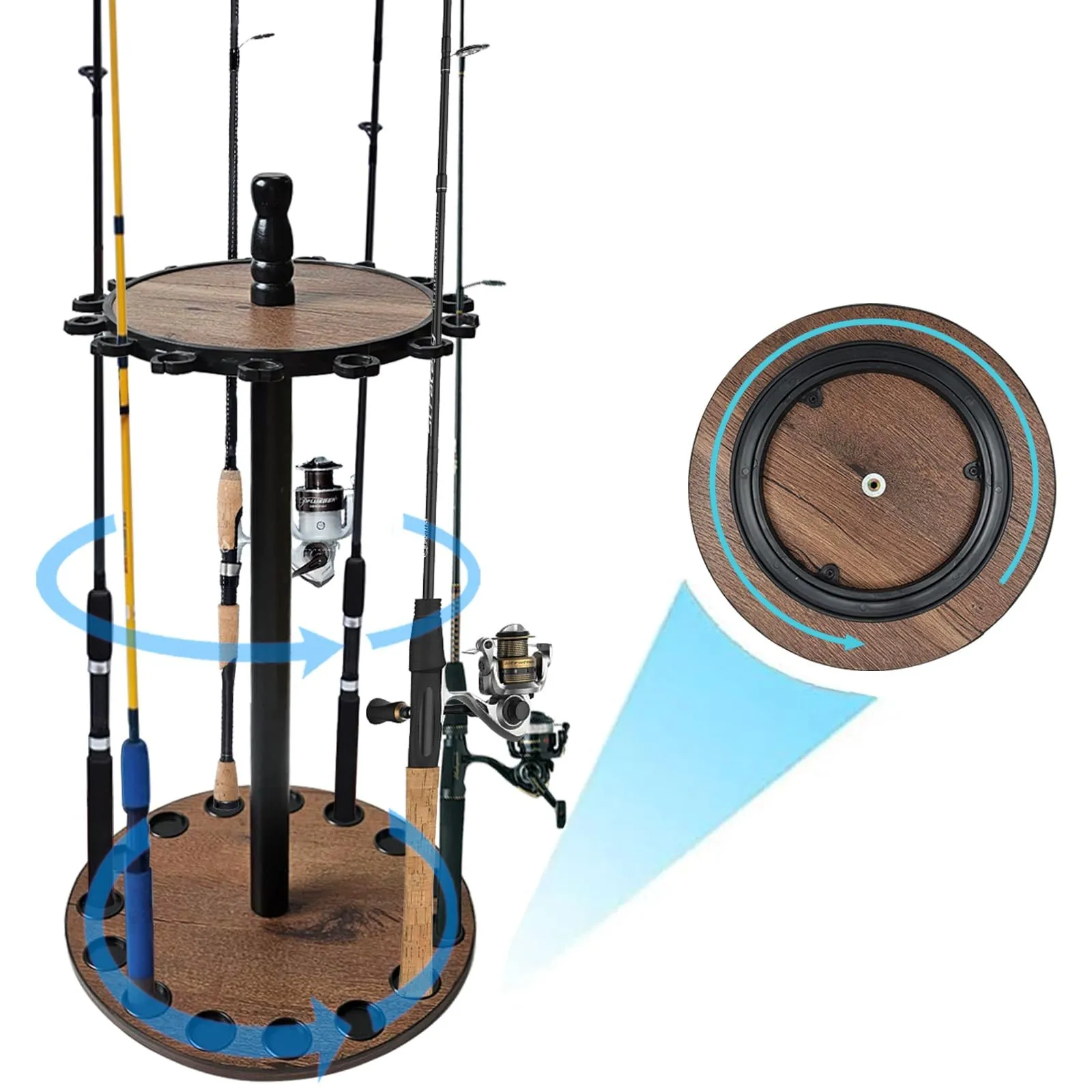 【即日発送】【ウォールナットカラー】丸型デザイン360度回転釣竿 スタンド 釣15本の釣り竿を収納可能竿収納ラック 高度な釣竿展示台 釣竿ラック ロッドスタンド 組立簡単 釣り竿ラック 釣り竿ディスプレイラッ 日本語説明書付き