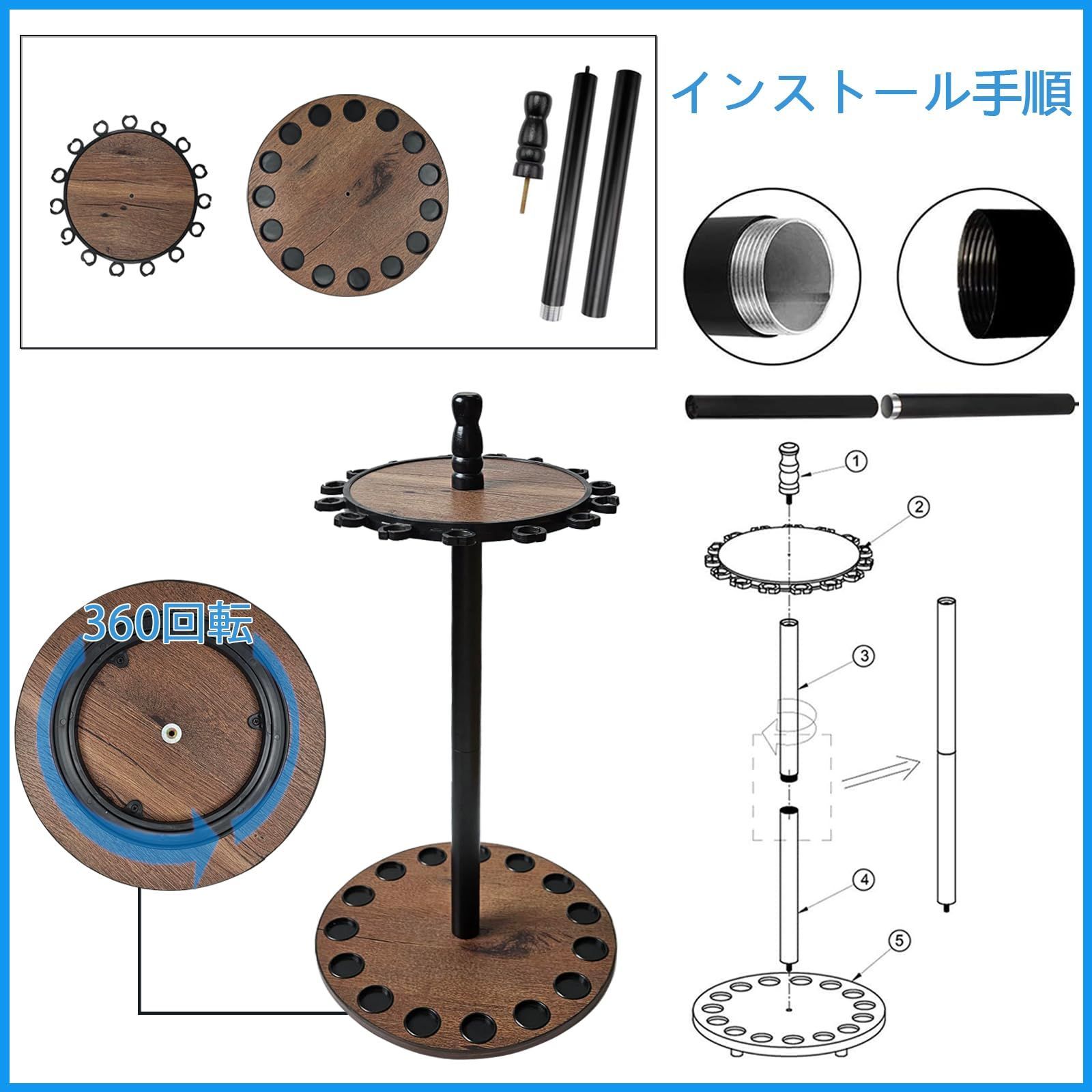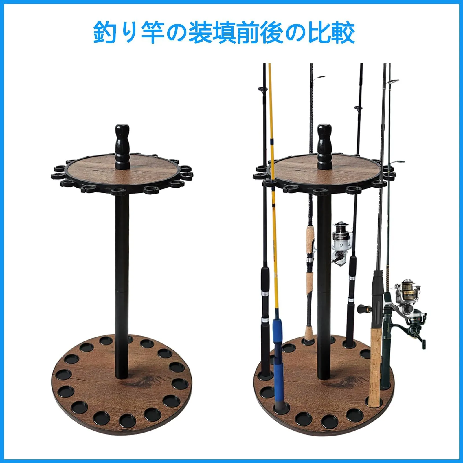 【ウォールナットカラー】丸型デザイン360度回転釣竿 スタンド 釣15本の釣り竿を収納可能竿収納ラック 高度な釣竿展示台 釣竿ラック 組立簡単 釣り竿ラック 釣り竿ディスプレイラッ 日本語説明書付き 色: くるみ木色