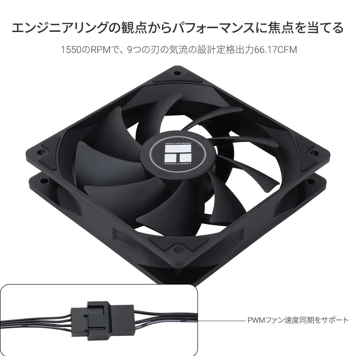 【高性能クーリングファン】を搭載 4PIN PWMファンケーブルインターフェースを通じて、マザーボードの温度に応じて速度を決定することができ、最大速度1550RPMの自動速度制御が可能です。最大55cmのケーブルで構成され、ファンのPWMシリーズ制御が可能、ケースやCPUクーラーに最適です。