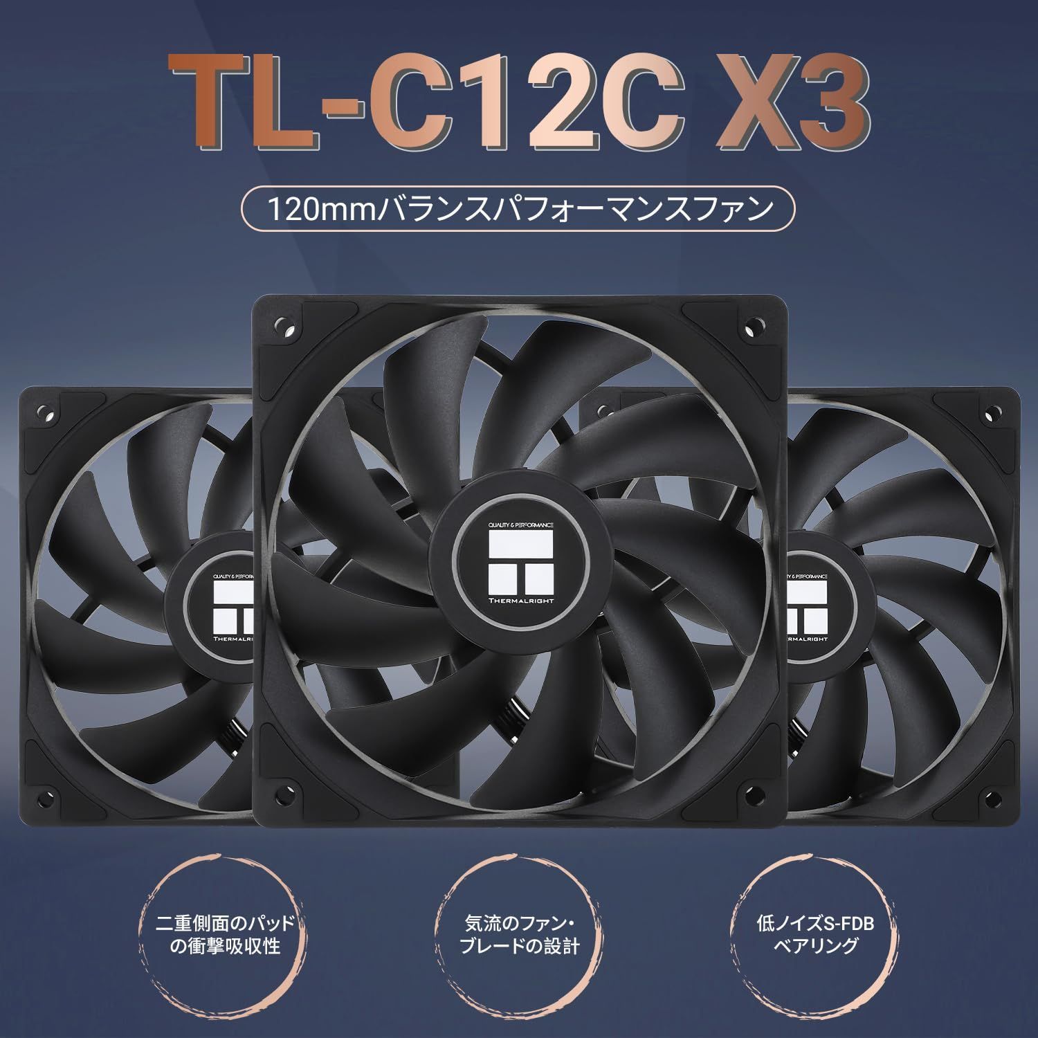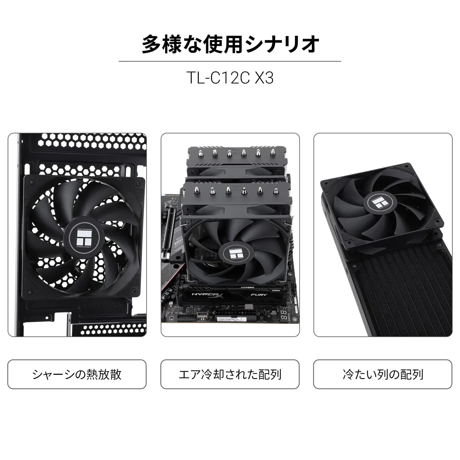 【数量限定】CPUファン 120mmケースクーラー、4ピンPWM静音コンピュータファン、S-FDBベアリング付き、最大1550RPM冷却ファン(3個) TL-C12C Thermalright