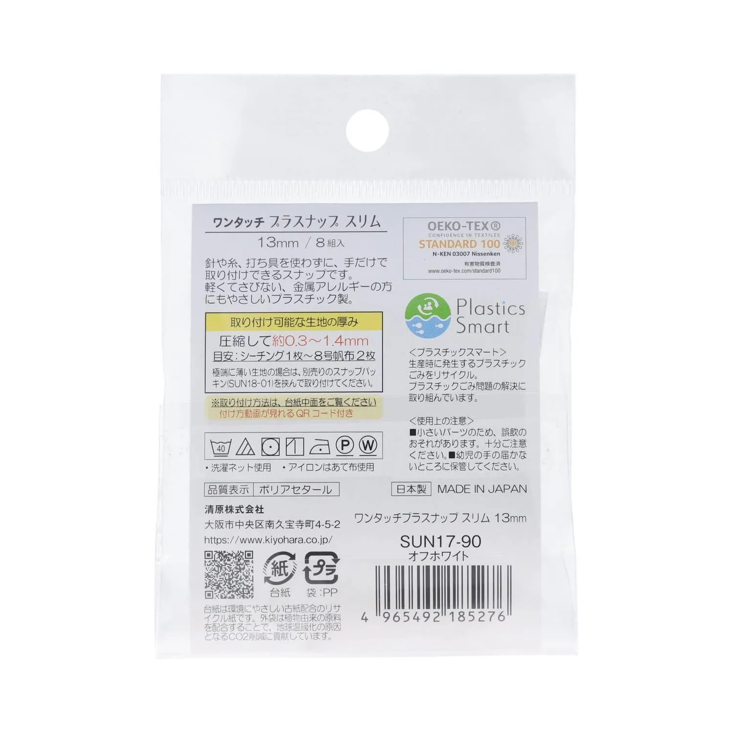KIYOHARA サンコッコー ワンタッチプラスナップ スリム 8組入 直径13mm オフホワイト SUN17-90