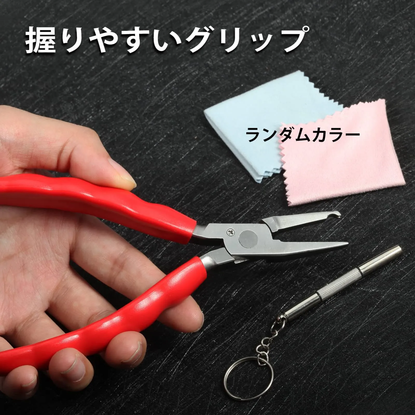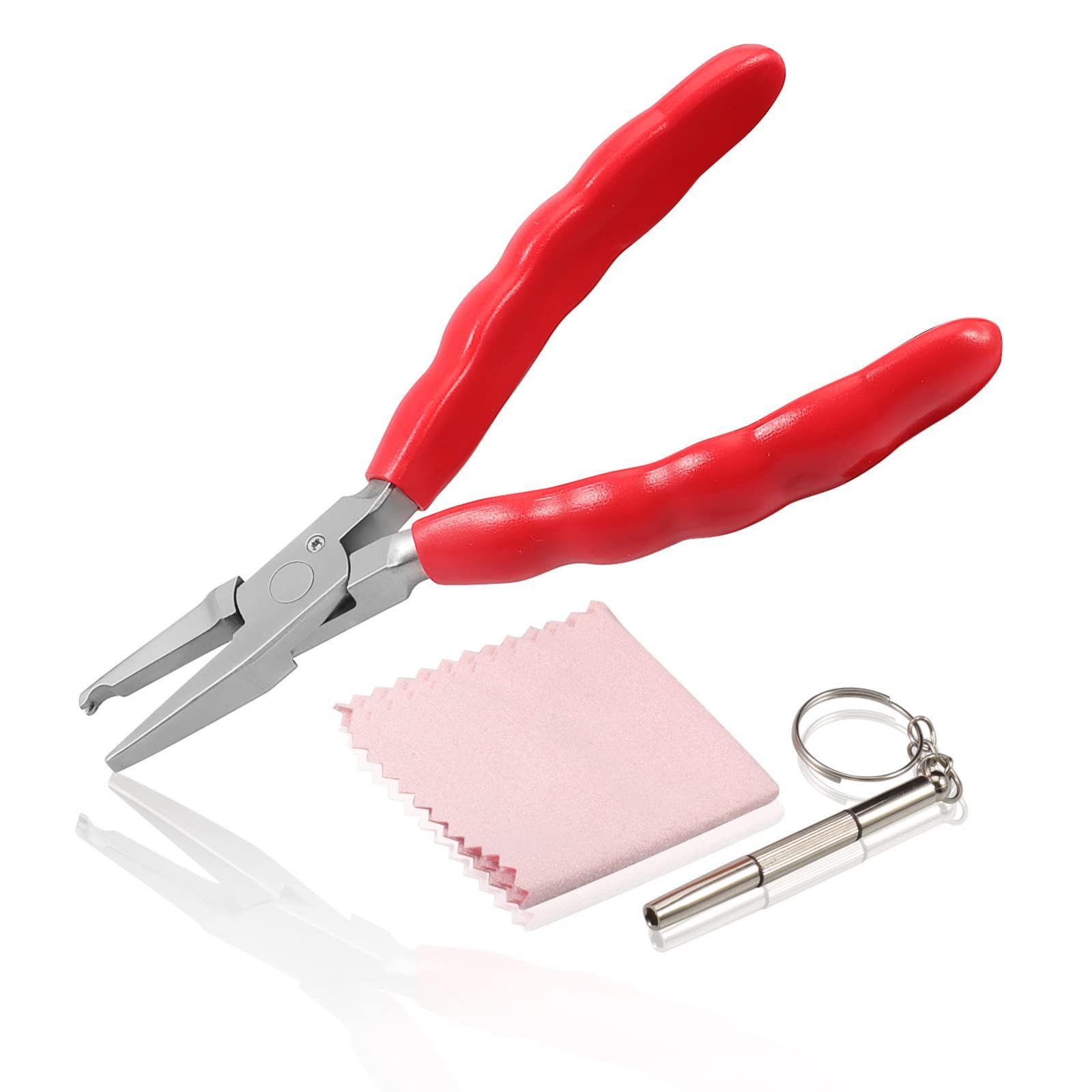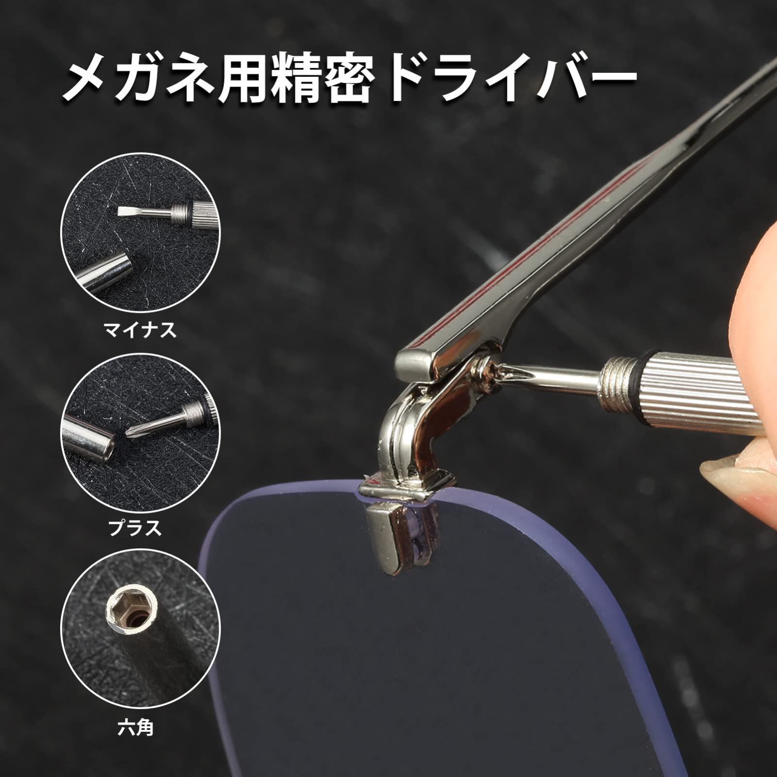 セット内容:1 x鼻パッド用やっとこ 、1 xドライバー 、1 xメガネクロス(ランダムカラー)。