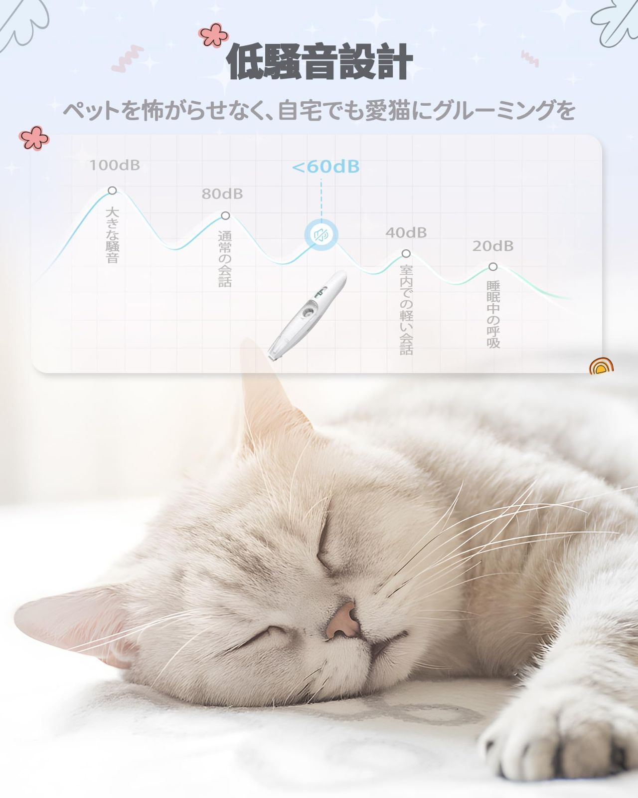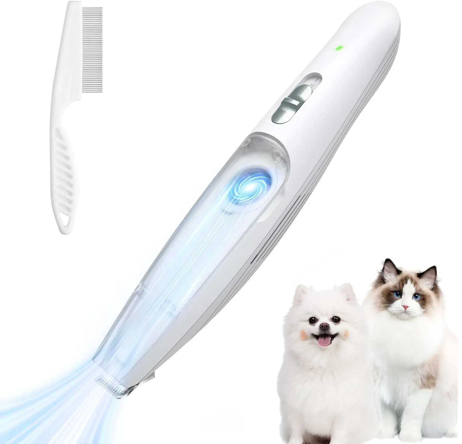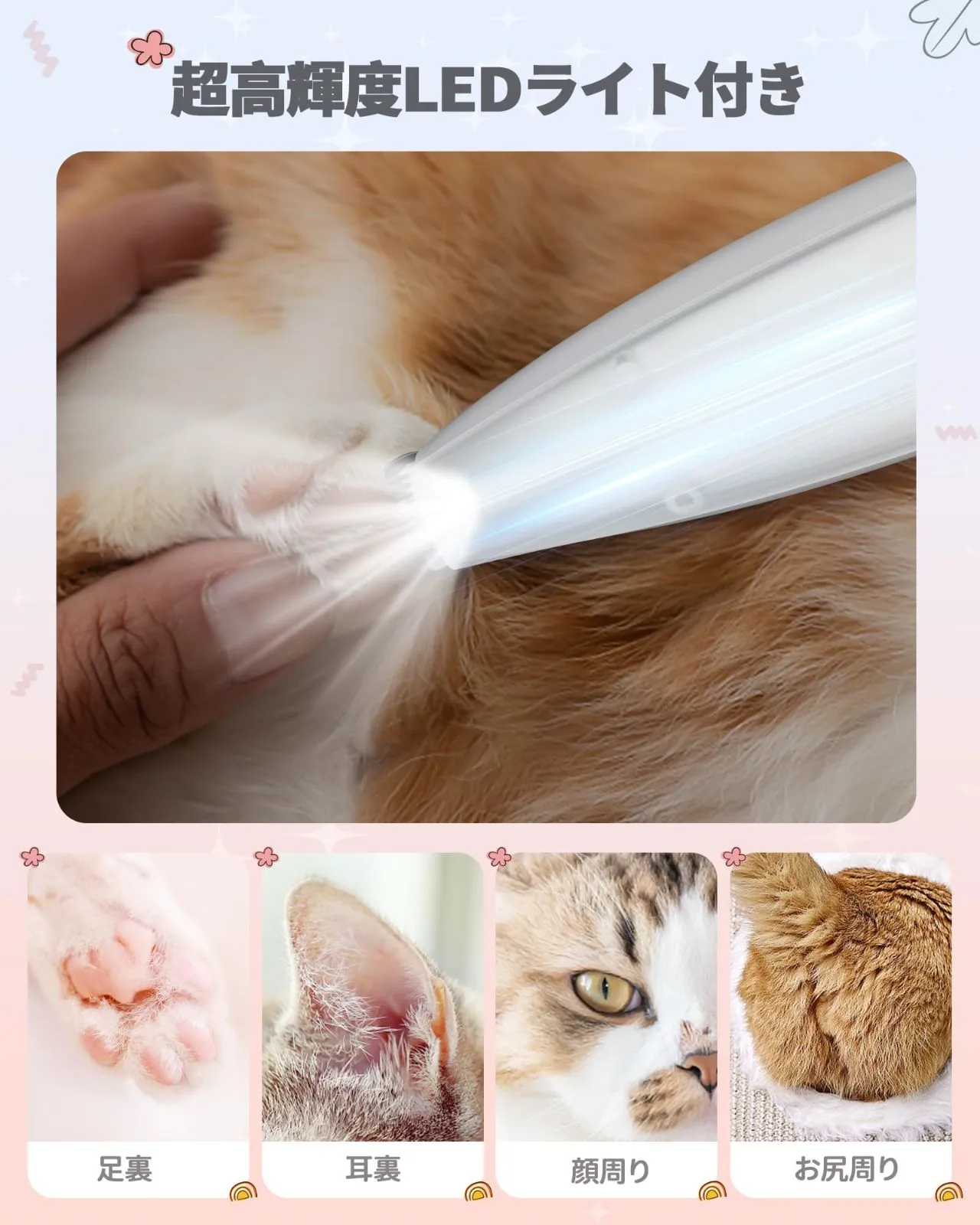 【数量限定】低振動 LEDライト付き 2段階スピード調整 静音設計 コードレス 足裏用バリカン 充電式 磁気チャック毛貯蔵庫付き 猫 耳裏 臀部 犬 顔周り 犬用バリカン お尻周り 小型犬・猫対応 【吸引式】FERRISA 初心者向け