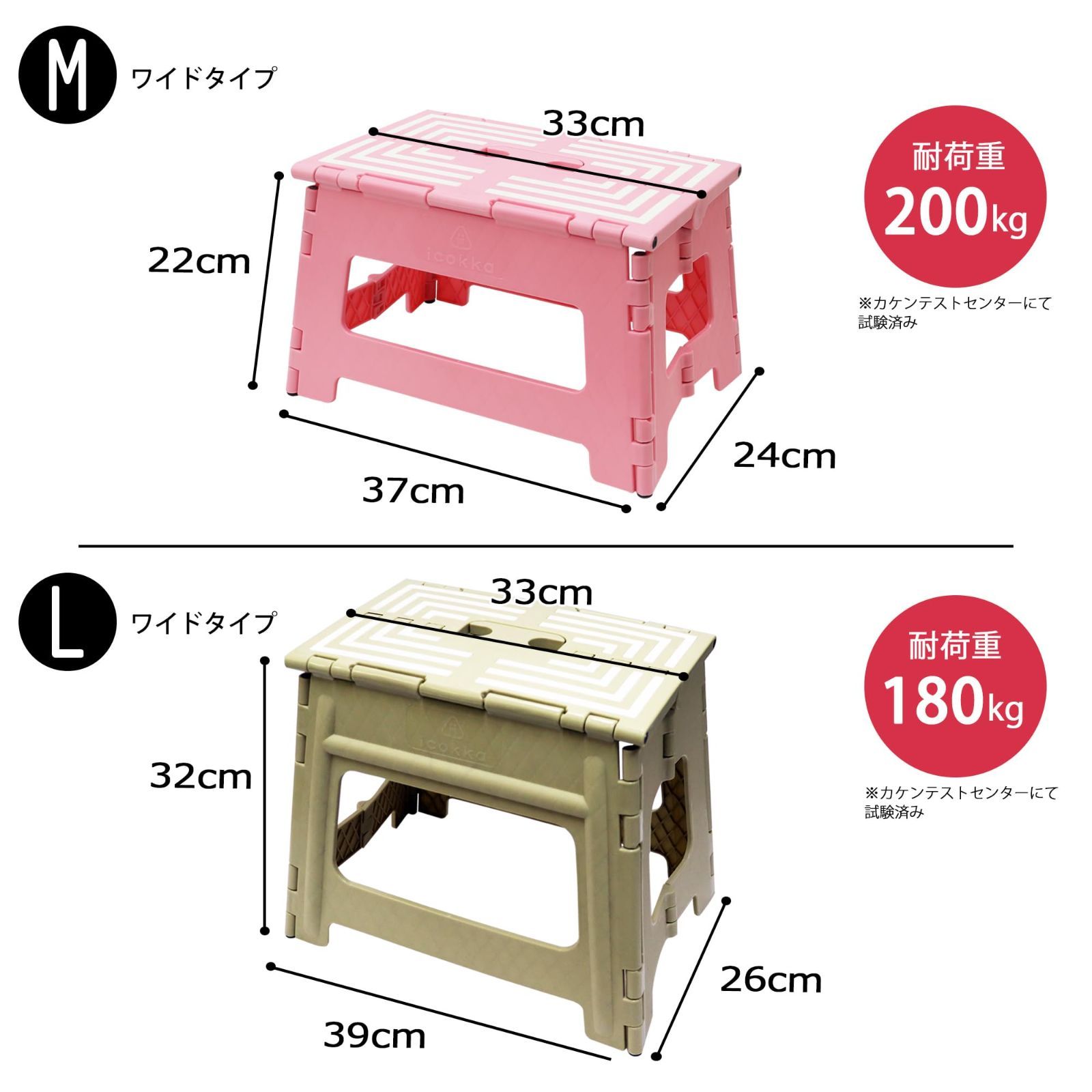 ・Mサイズ:耐荷重200kgは本体にかかる場合です。Lサイズ:耐荷重180kgは本体にかかる場合です。