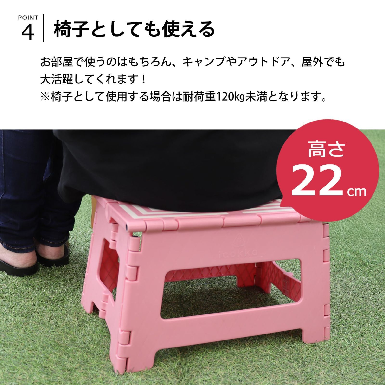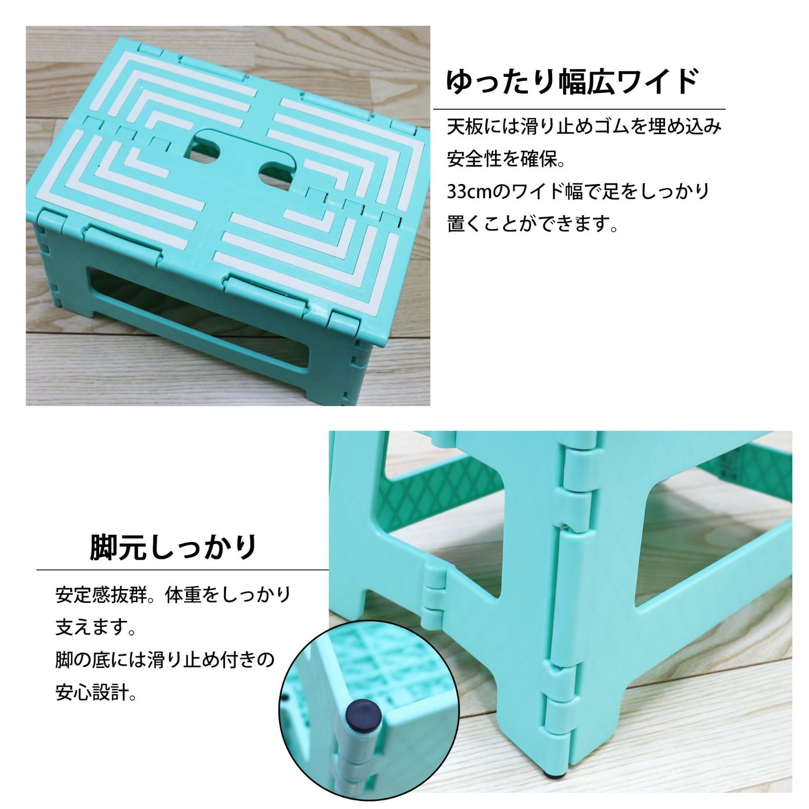超強力 踏み台 折りたたみ ステップ スツール 脚立 椅子 子供 大人 (アイスグリーン, M(高さ22㎝))