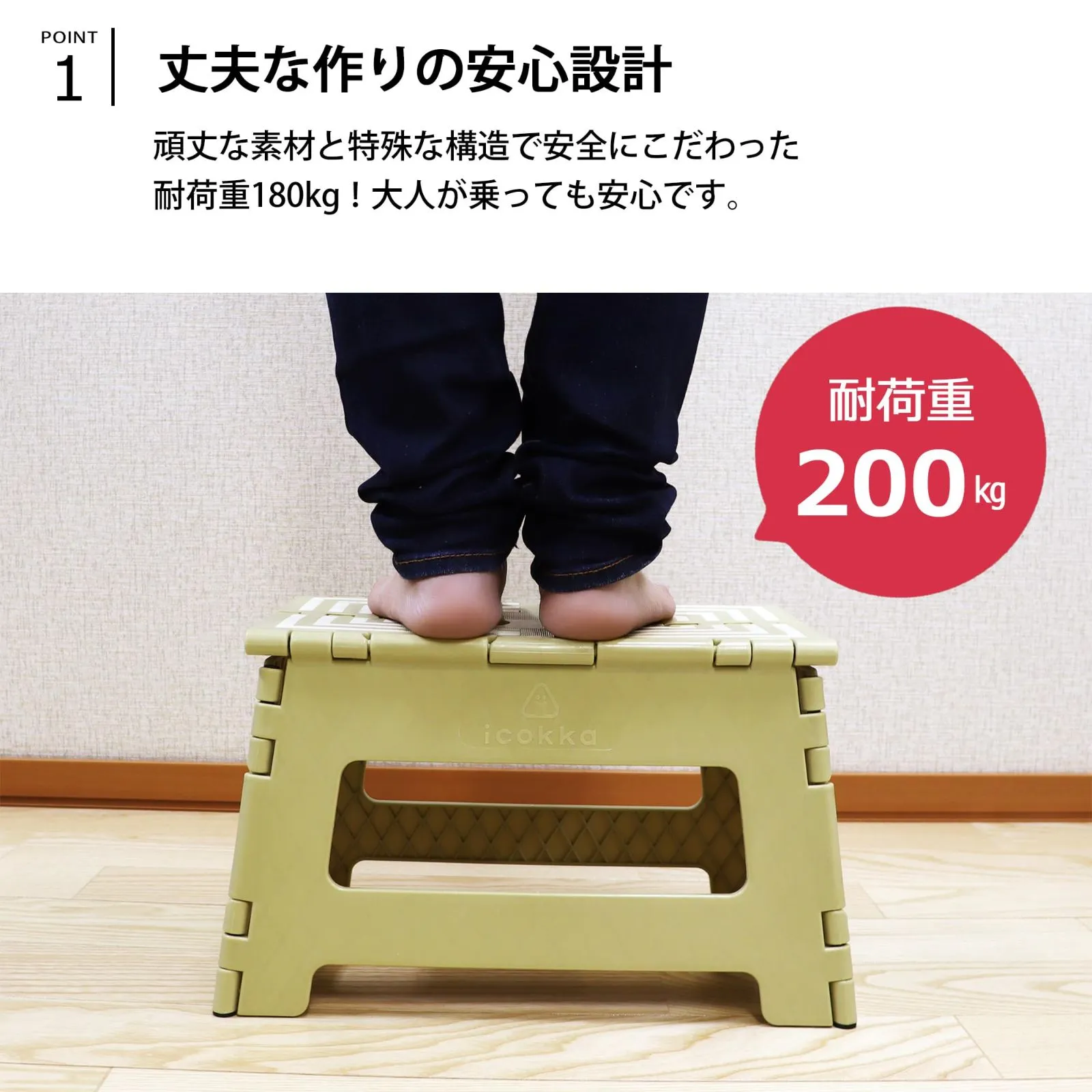 踏み台上面の一部のみ(つま先立ちやかかと立ちなど)に力のかかる使用は危険ですので絶対におやめください。