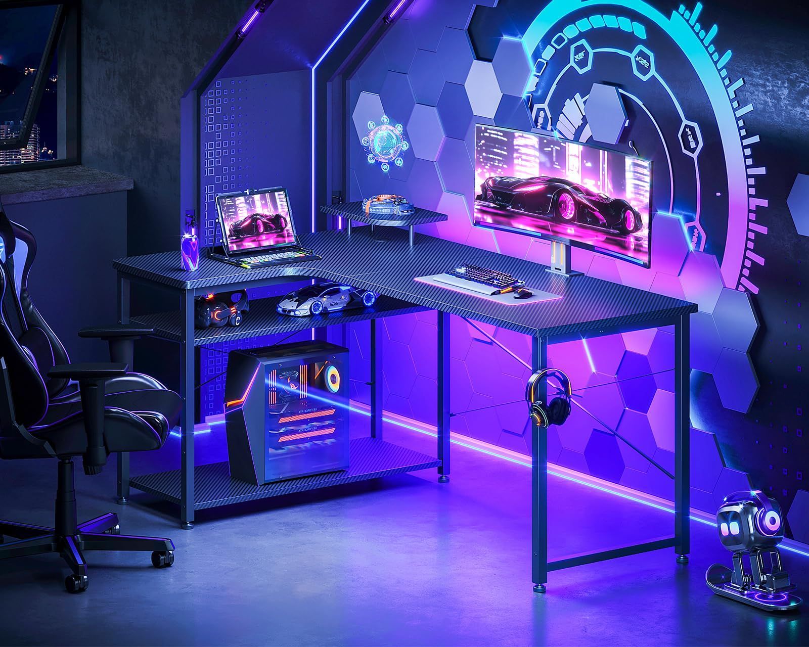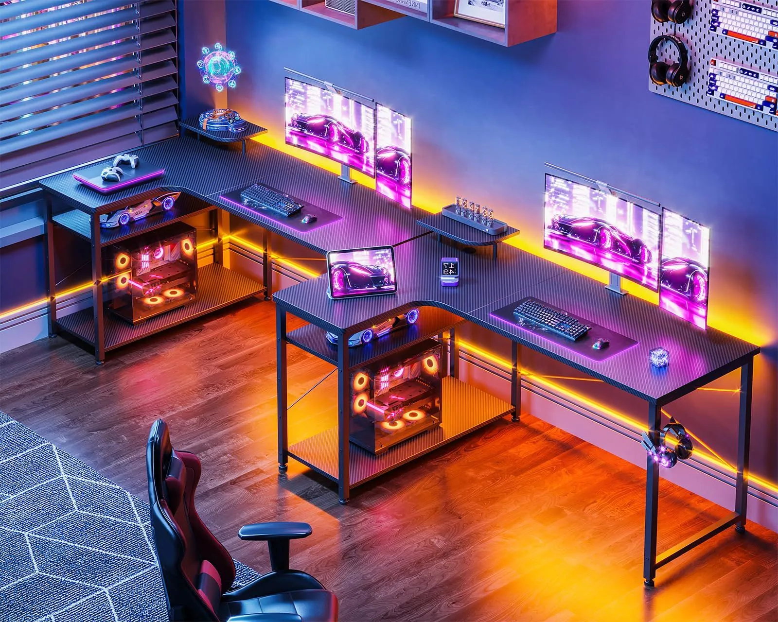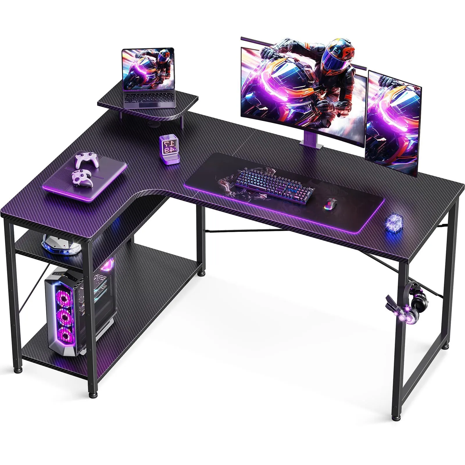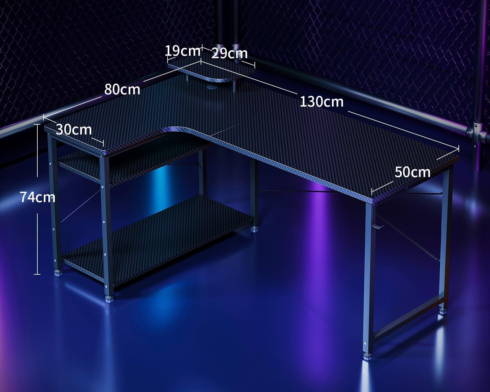 【商品仕様】パソコンデスクとしてはもちろん、ゲーミングデスクとしても使用できるおしゃれなL字デスク。