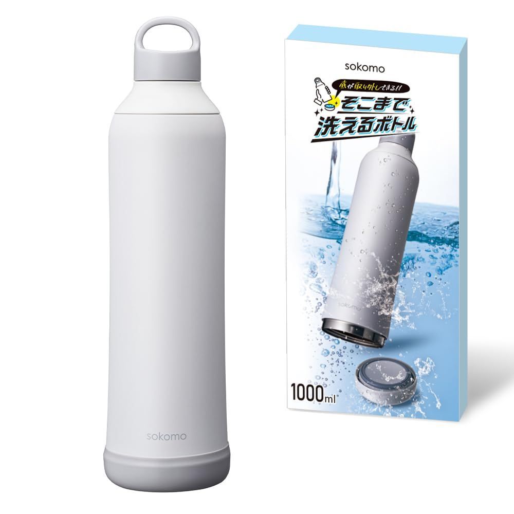 ドウシシャ 水筒 ステンレスボトル 1.0? 真空断熱 保温保冷 魔法瓶 洗いやすい ホワイト sokomo