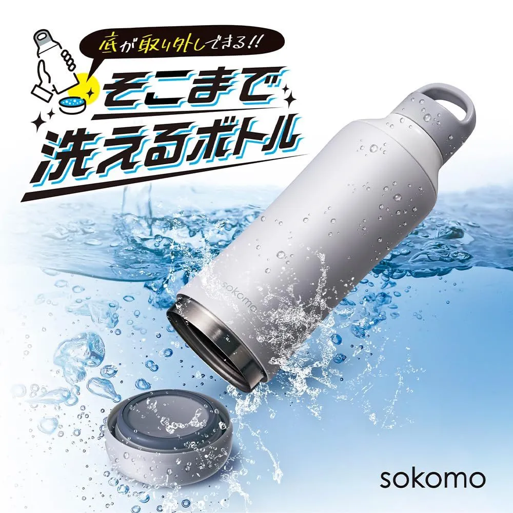 そこまで洗えるボトル。Sokomo(ソコモ)。底が取り外し可能、中までしっかり洗えて衛生的に使えます。底が開くので氷などが入れやすい。