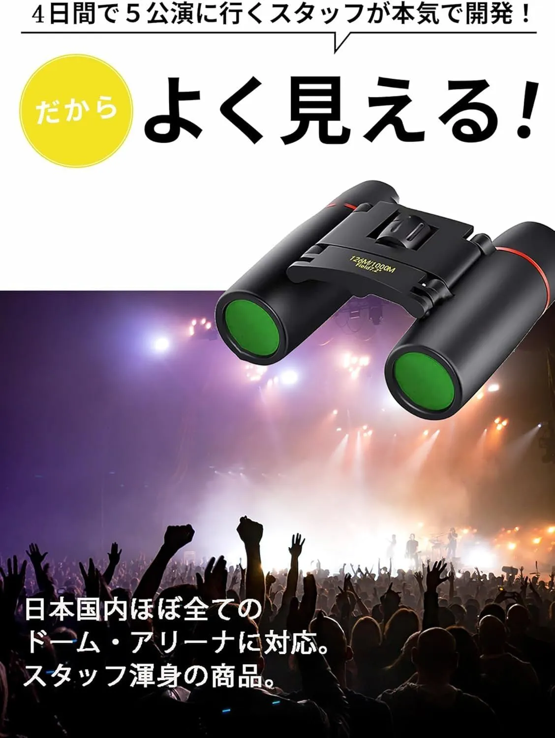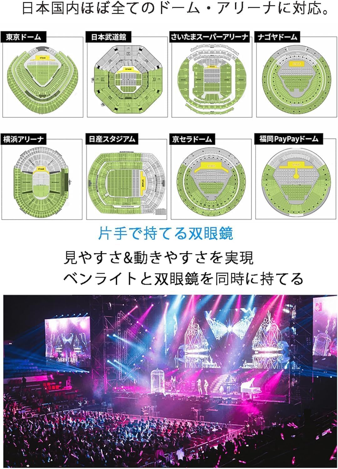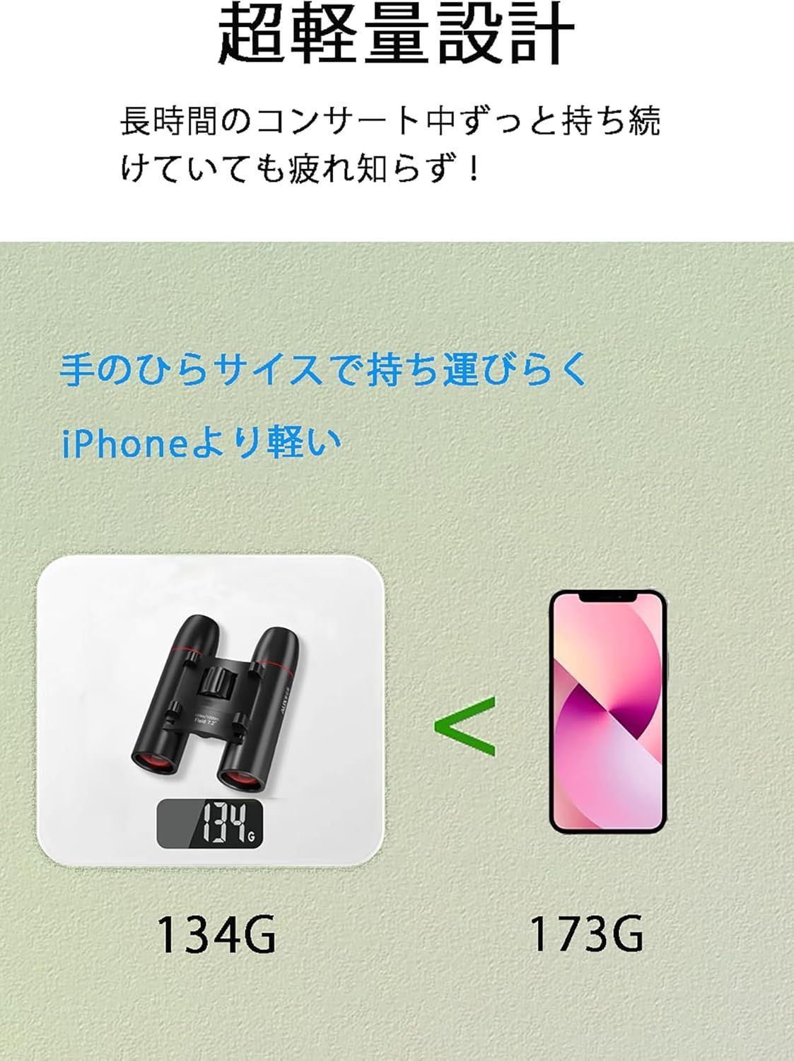 【本体重量134gの超軽量を実現】 本体重量がわずか134gと超軽量でコンパクトな双眼鏡なので、コンサート、ドーム、ライブ、旅行のお供にもってこい女性やお子さんも長時間持っても疲れない ??