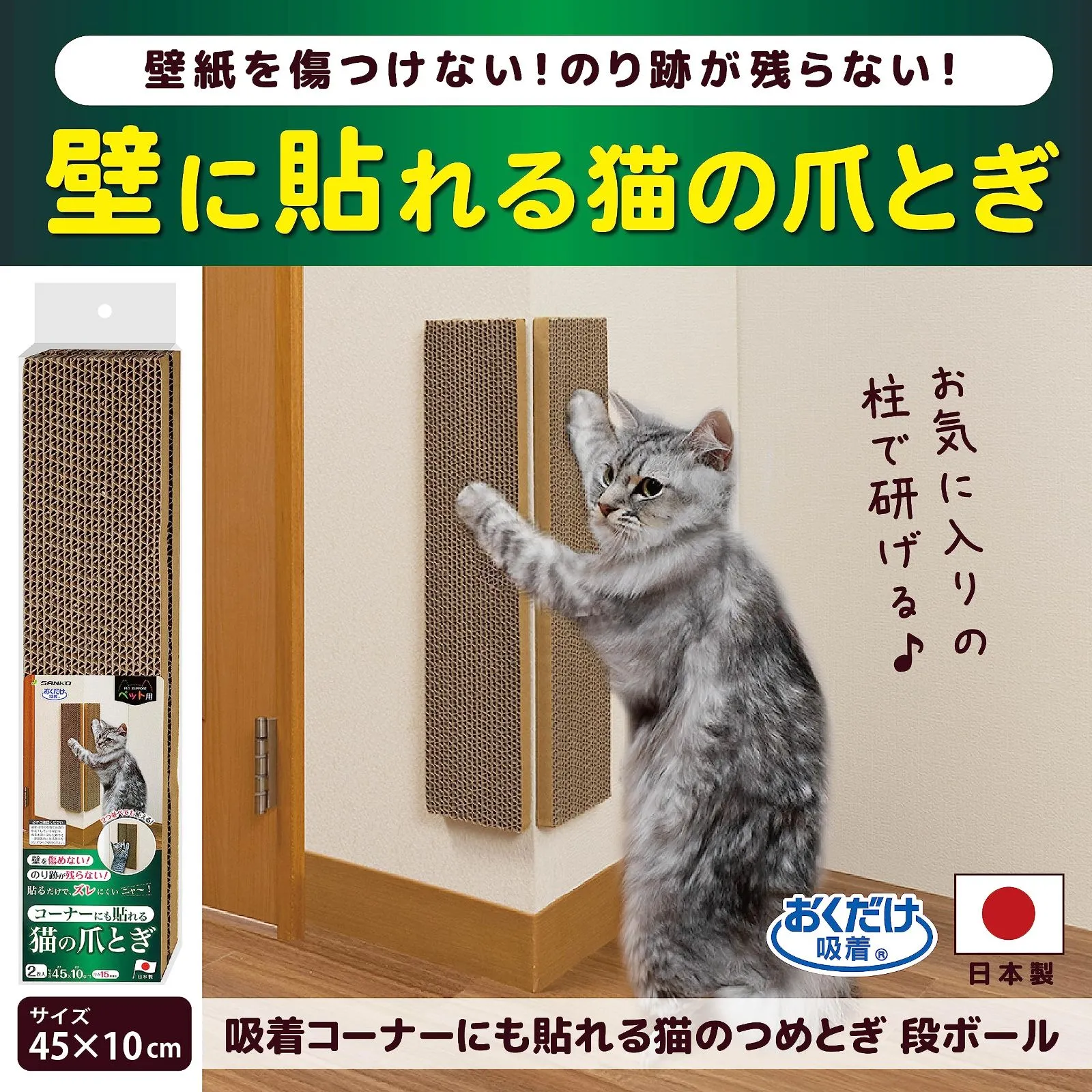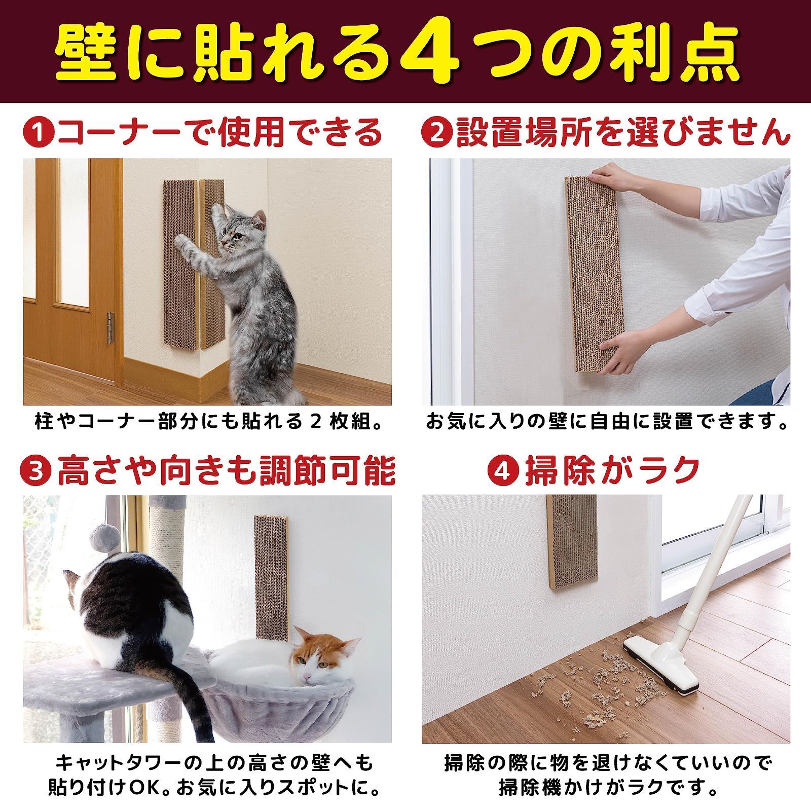 サンコー 吸着 コーナーにも貼れる 猫のつめとぎ 段ボール KX-61 45×10cm 2個入 壁傷 防止 貼りなおせる ネコ