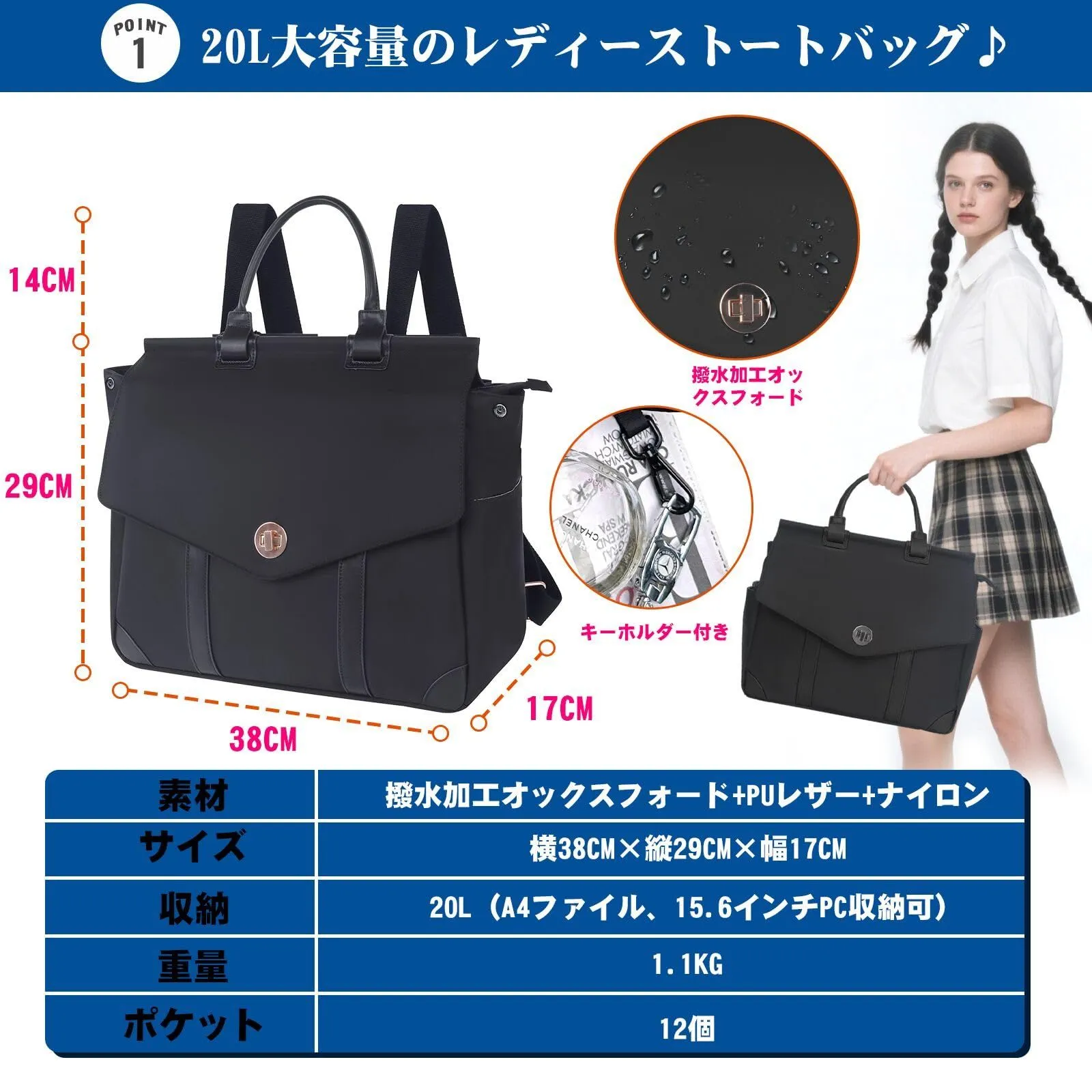 【数量限定】ショルダーバッグ 防水 斜め掛け 出張 バックパック 旅行 ハンドバッグ 通学 4way 通勤 大容量 拡張可能 15.6インチPC収納 12ポケット 16インチ 20L レディース ターンロック リュック キーホルダー付き オーバーレイ