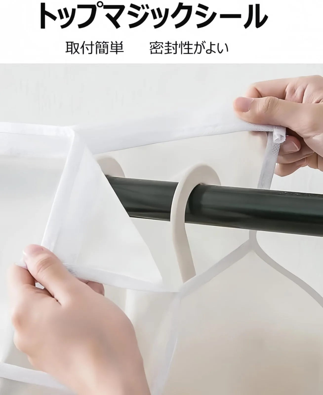 【PEVA不織布材質】通気性を保ちながら、ホコリや虫をシャットアウト!不織布がほこりを避けて通気を確保。また、裾閉じタイプなのでホコリや虫から衣類をしっかりガードします 大容量に収納ができるのでシーズンオフの衣類もまとめて収納できます。防塵防虫のながらクローゼット内をスッキリ整頓出来ます 最後までご確認頂き誠にありがとうございました。 上記をご確認頂き、ご購入いただけましたら幸いです。 何かご不明な点がございましたらお気軽にメッセージからお問い合わせ下さい。