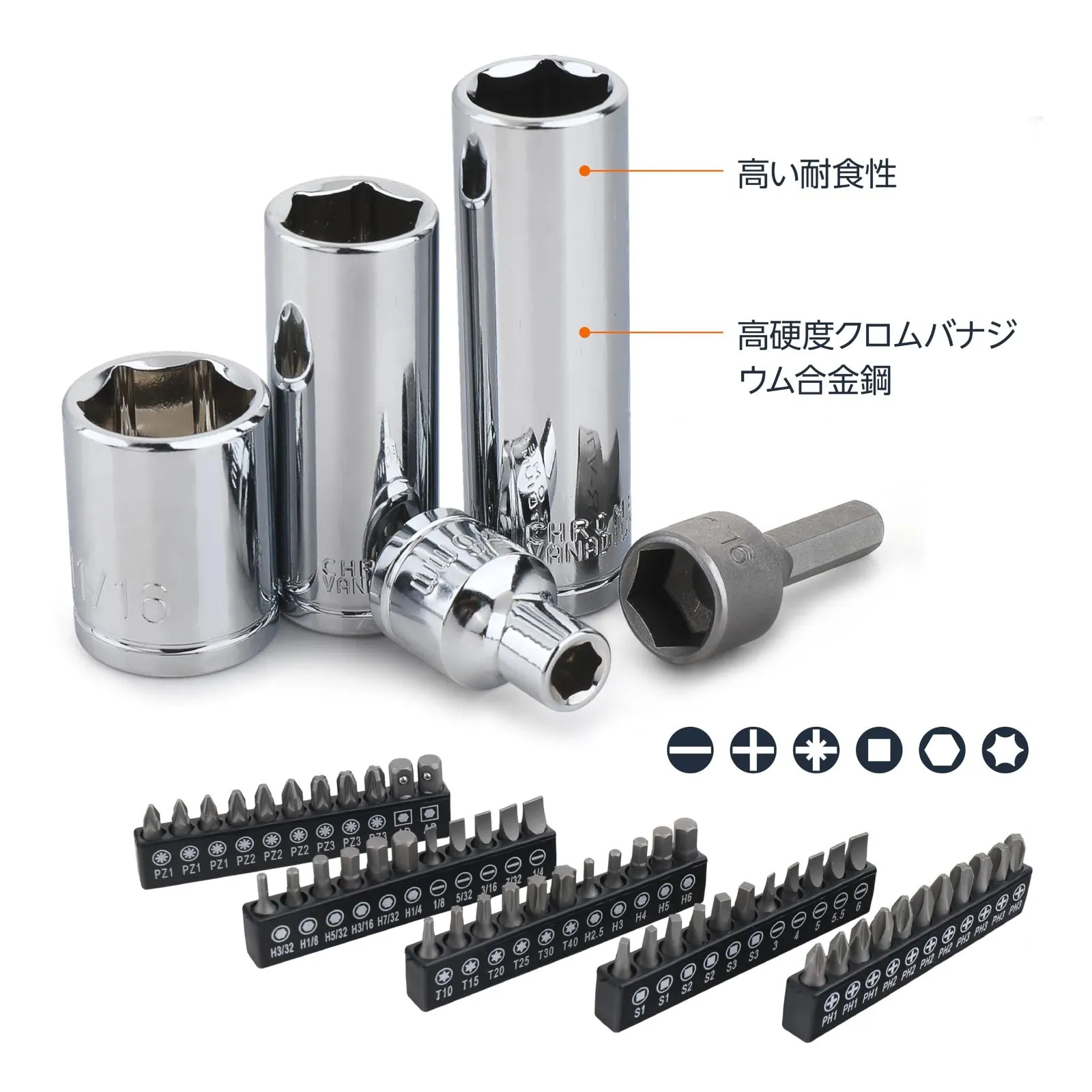 SAEレンジとメートルサイズのソケットとドライブ用工具を提供しています。