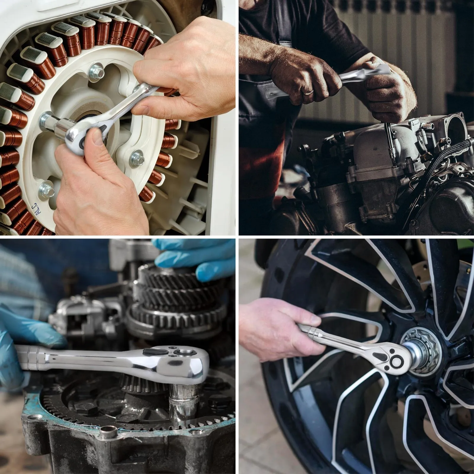 201個のソケットセットは、一般的なソケット、レンチ、六角スパナが使えるようになっています。