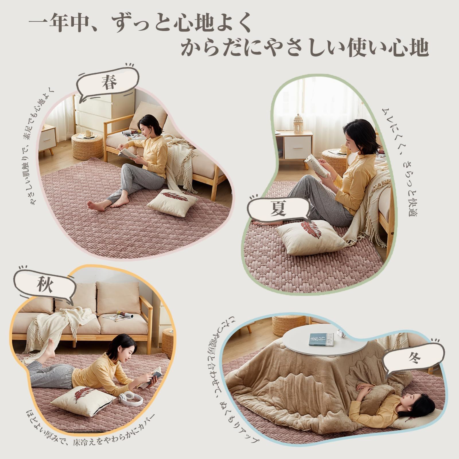 【お手入れが楽々】お手入れラクラク毛足が短いので、日々のお手入れは掃除機で完了。ホコリや毛も簡単に除去できます。洗濯機で丸洗いOKなので、汚れても安心。型崩れしにくく、いつでも清潔で心地よい状態を保てます。