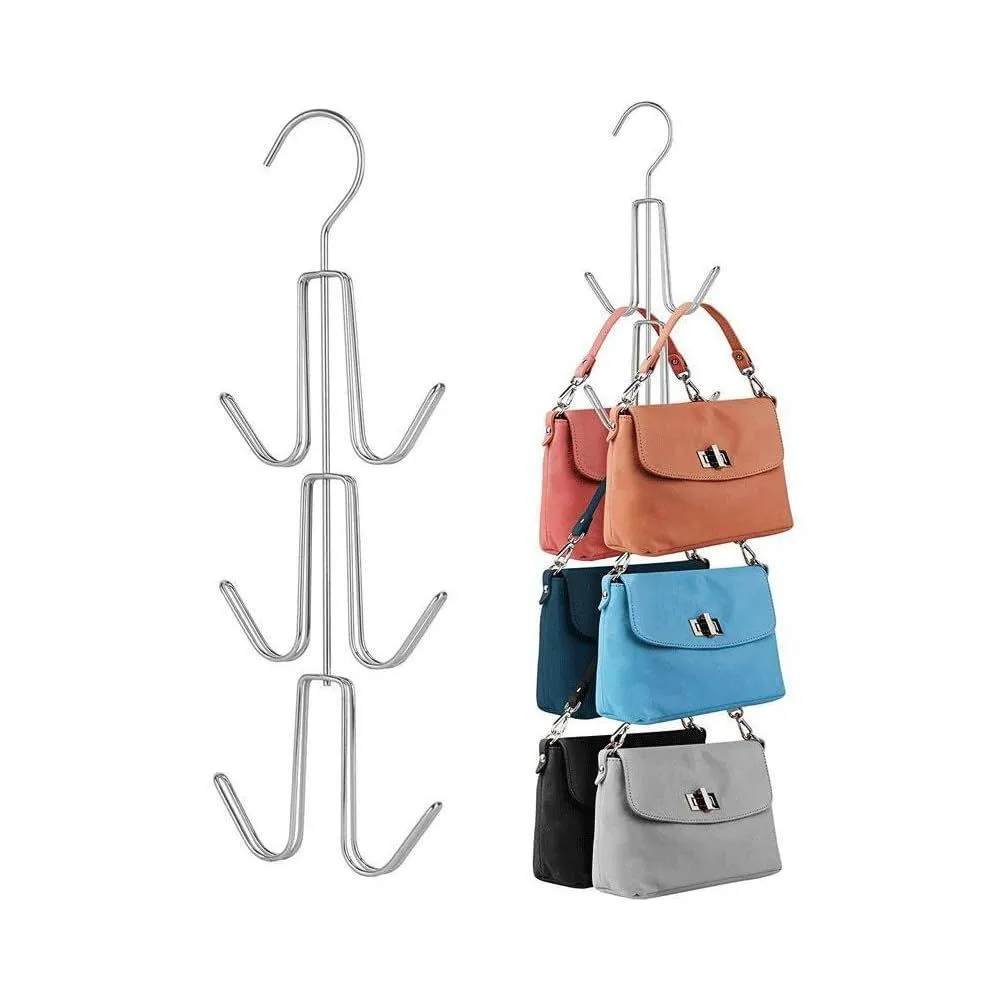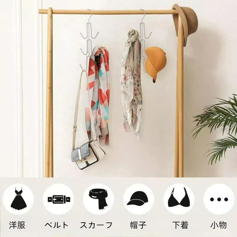 【新着商品】鞄 帽子 バッグホルダー スカーフ バッグ掛け キャミソール 金属制 ネクタイ 吊り下げ ベルト 360度回転式 小物 バッグ収納ハンガー 収納ハンガー 2個組 8つの収納力 バッグ収納ラック (シルバー)