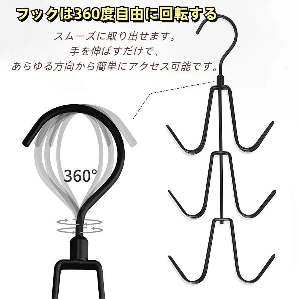 【360°回転式】このフックは360度自由に回転するため、ラックに掛けたバッグや帽子、小物をスムーズに取り出せます。手を伸ばすだけで、あらゆる方向から簡単にアクセス可能です。