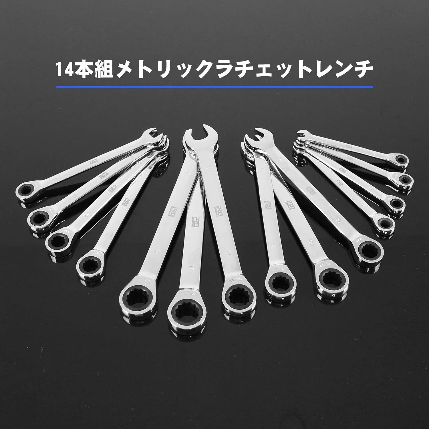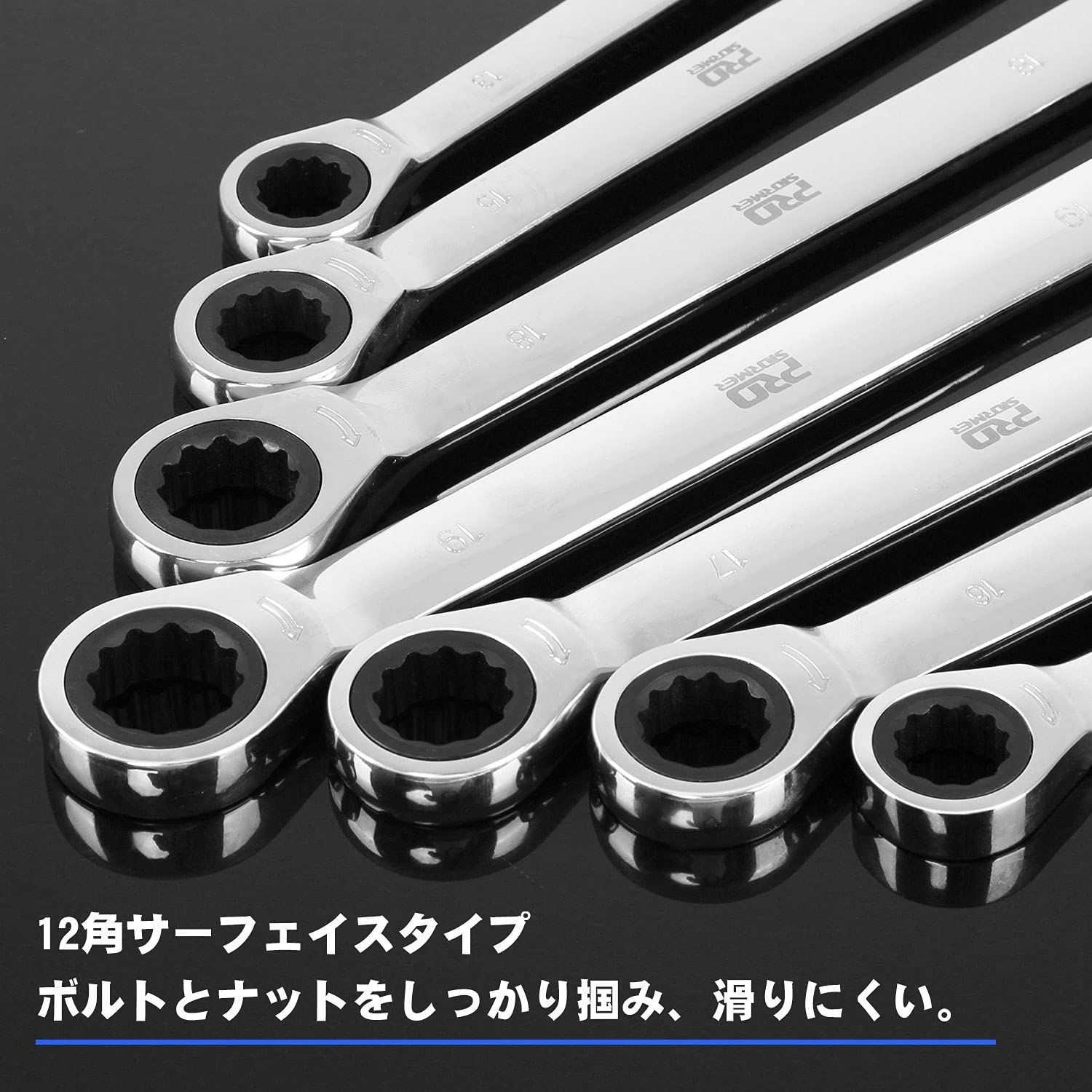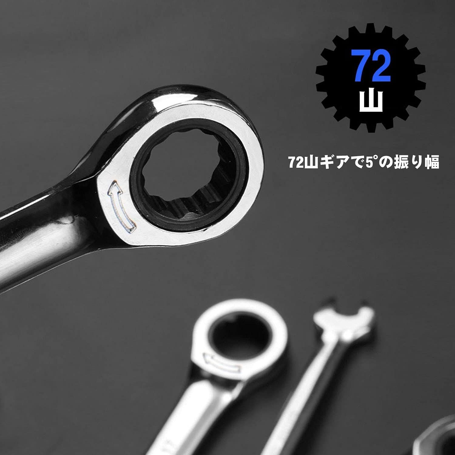 サイズ:72ギアラチェットコンビネーションレンチセット。14本セットサイズ:6mm、7mm、8mm、9mm、10mm、11mm、12mm、13mm、14mm、15mm、16mm、17mm、18mm、19mm