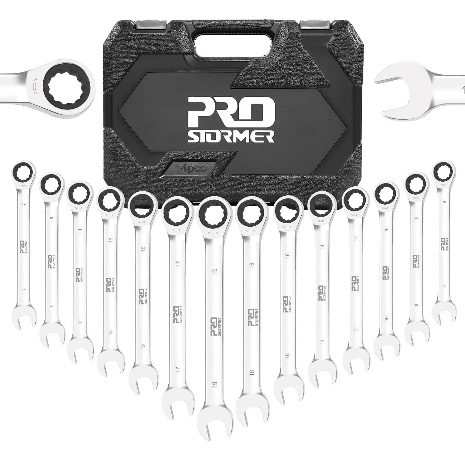 Prostormer コンビネーションレンチセット ラチェットレンチ スパナ レンチ 両用ヘッド 72ギア 6-19mm 14本組 自動車修理 車メンテナンス 組み立て DIY 収納ケース付き
