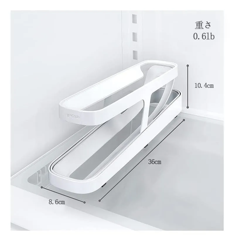 ★材料pp、8.2*36*10cm。2段 自動 ローリングエッグ ホル。耐久性に優れ、臭気のない環境、スライドのデザイン、物品は冷蔵室で新鮮で、また拾うことは非常に簡単です、使いやすい。