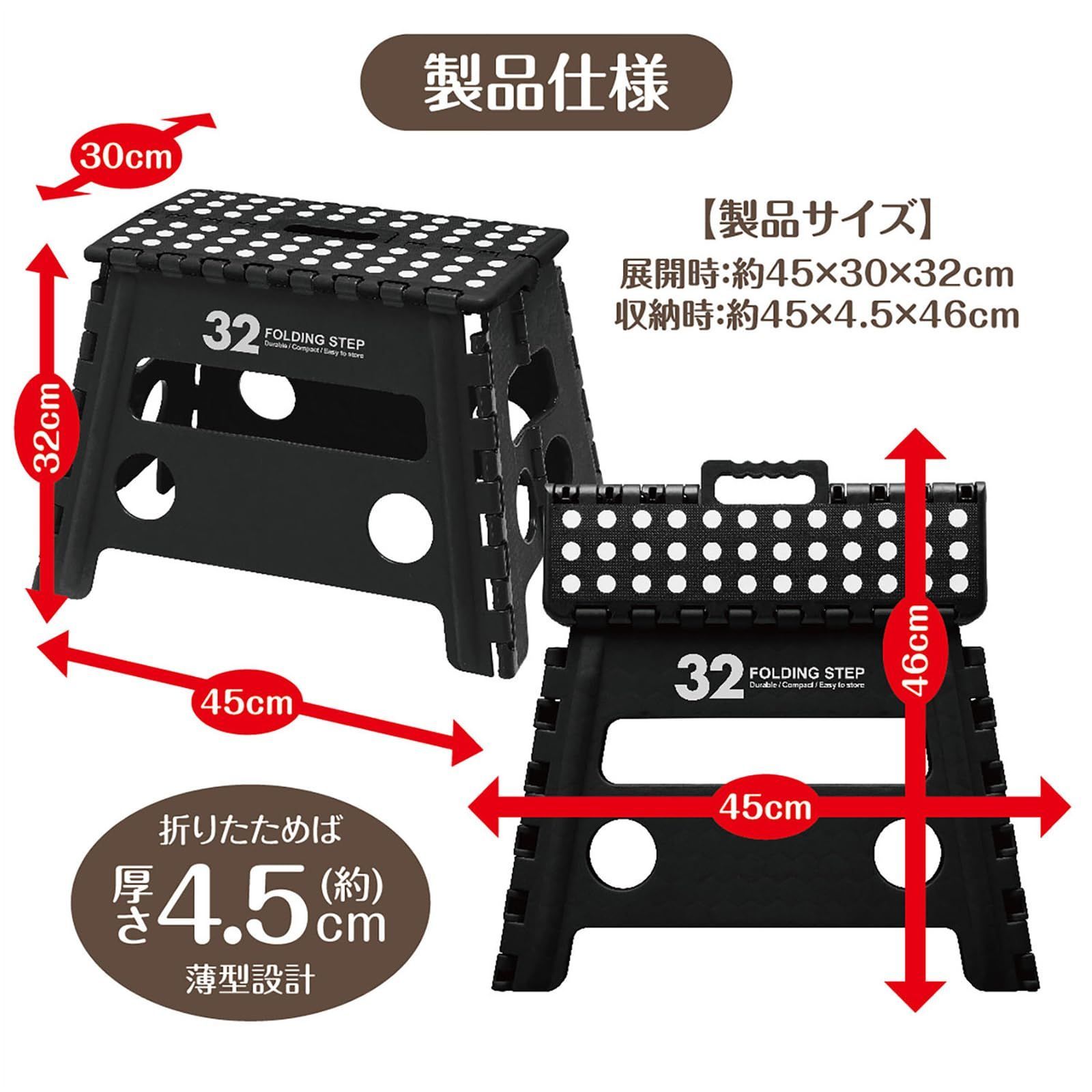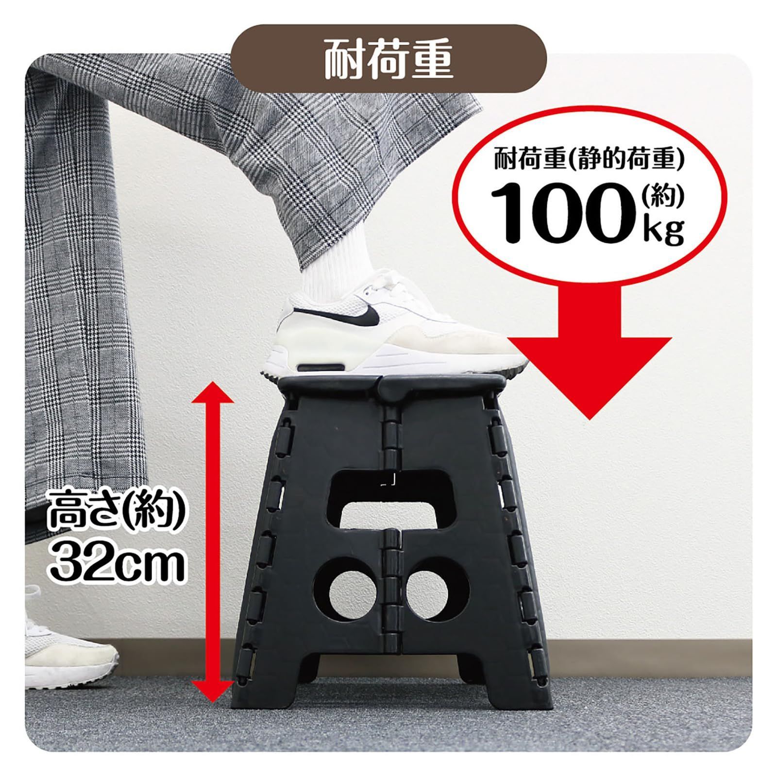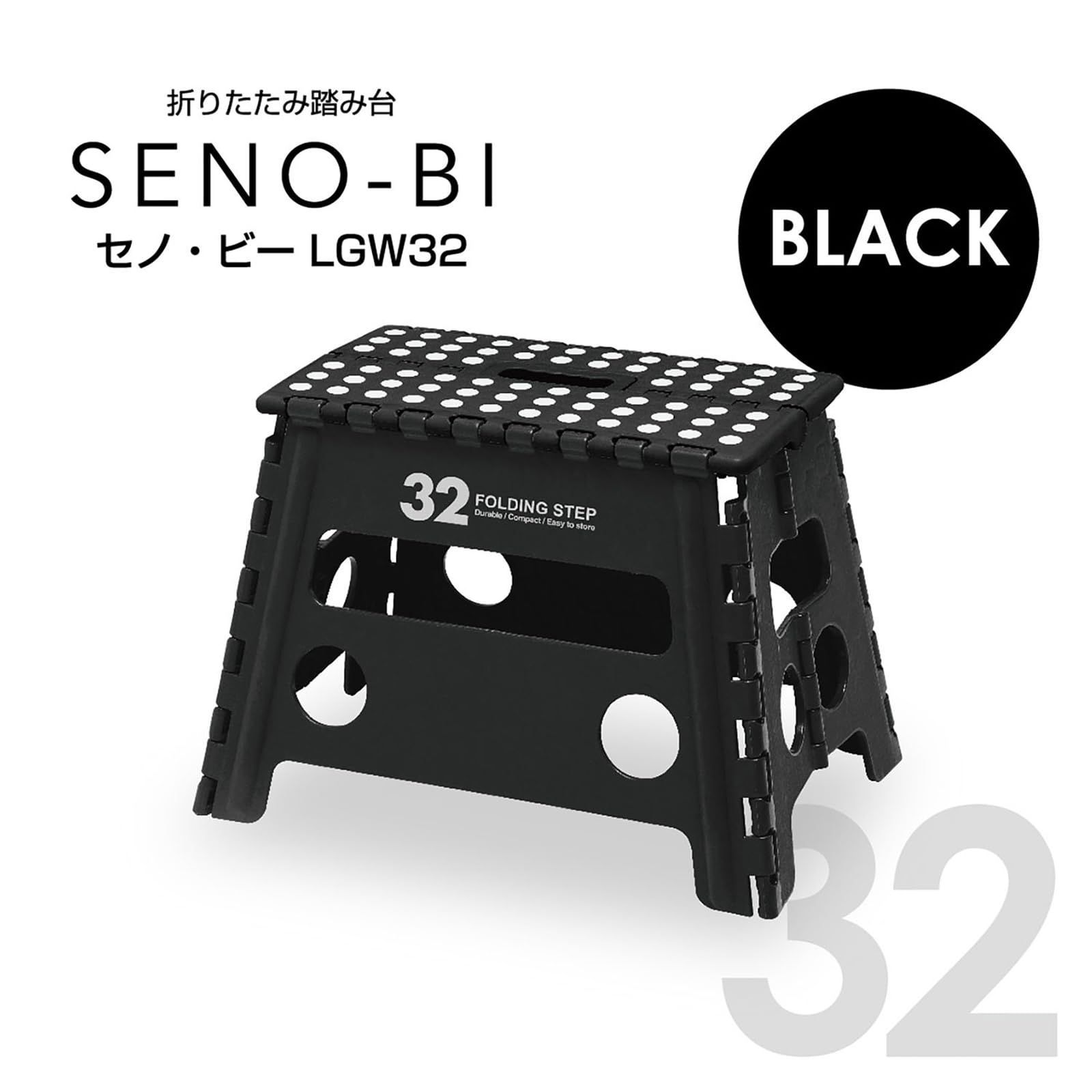 【即日発送】座椅子 ステップ 耐荷重100kg 折りたたみ椅子 高さ32×幅45×奥行30cm 室内・屋外 チェア 踏み台 アウトドア キャンプ ONE) 洗車 セノ・ビー LGW32 トレードワン(TRADE ブラック 30760