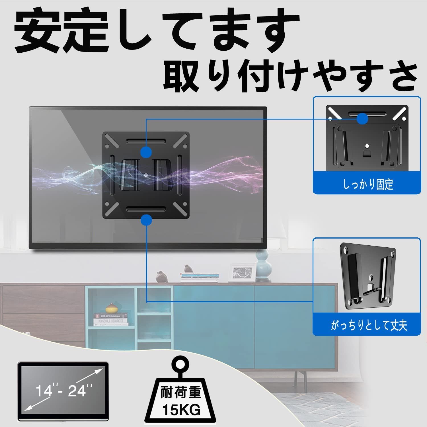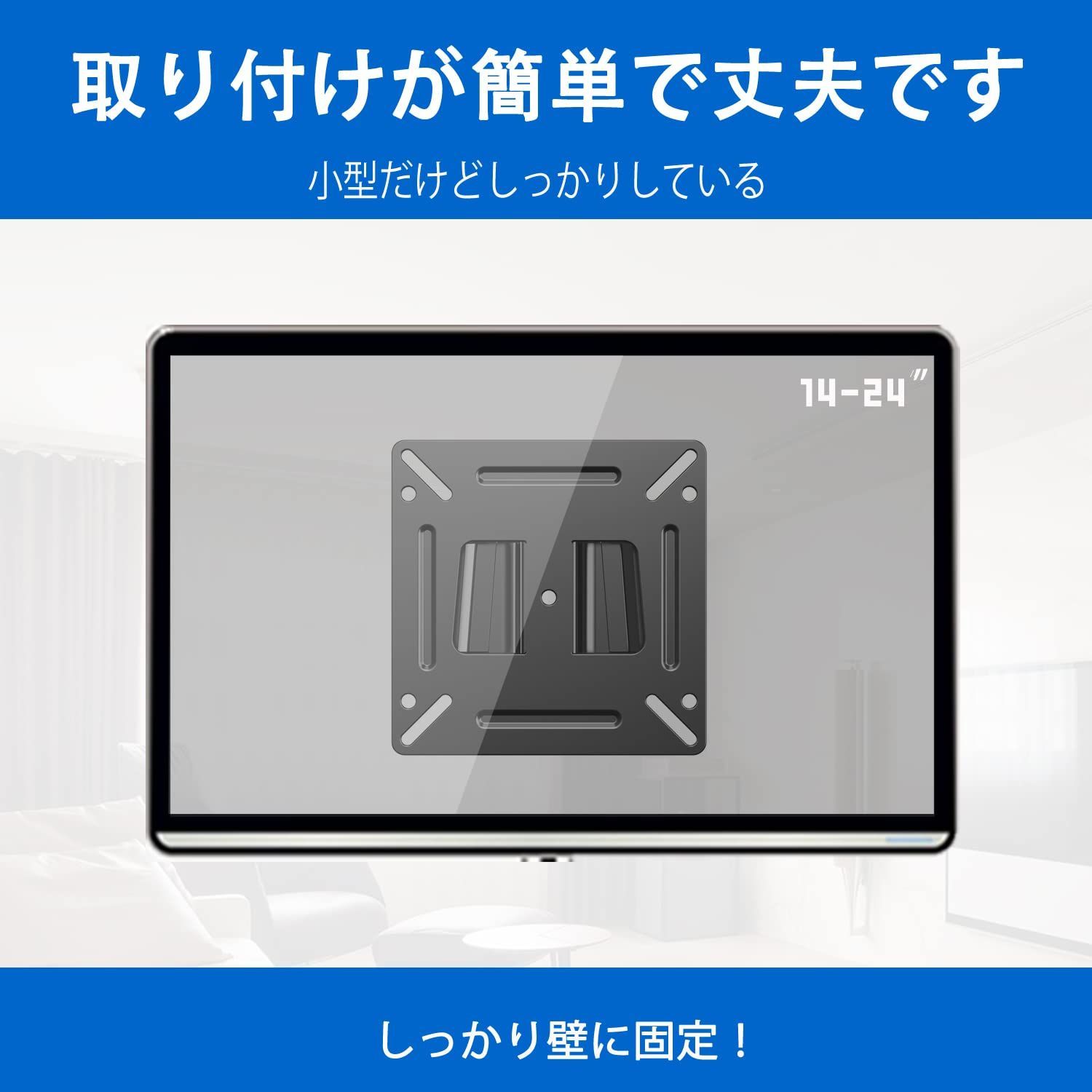 モニター テレビ 壁掛け金具 14~24インチ対応 液晶モニター 壁掛け金具 PC薄型 取付簡単 最大VESA規格100×100MM 耐荷重15KG cumputer 取付金具