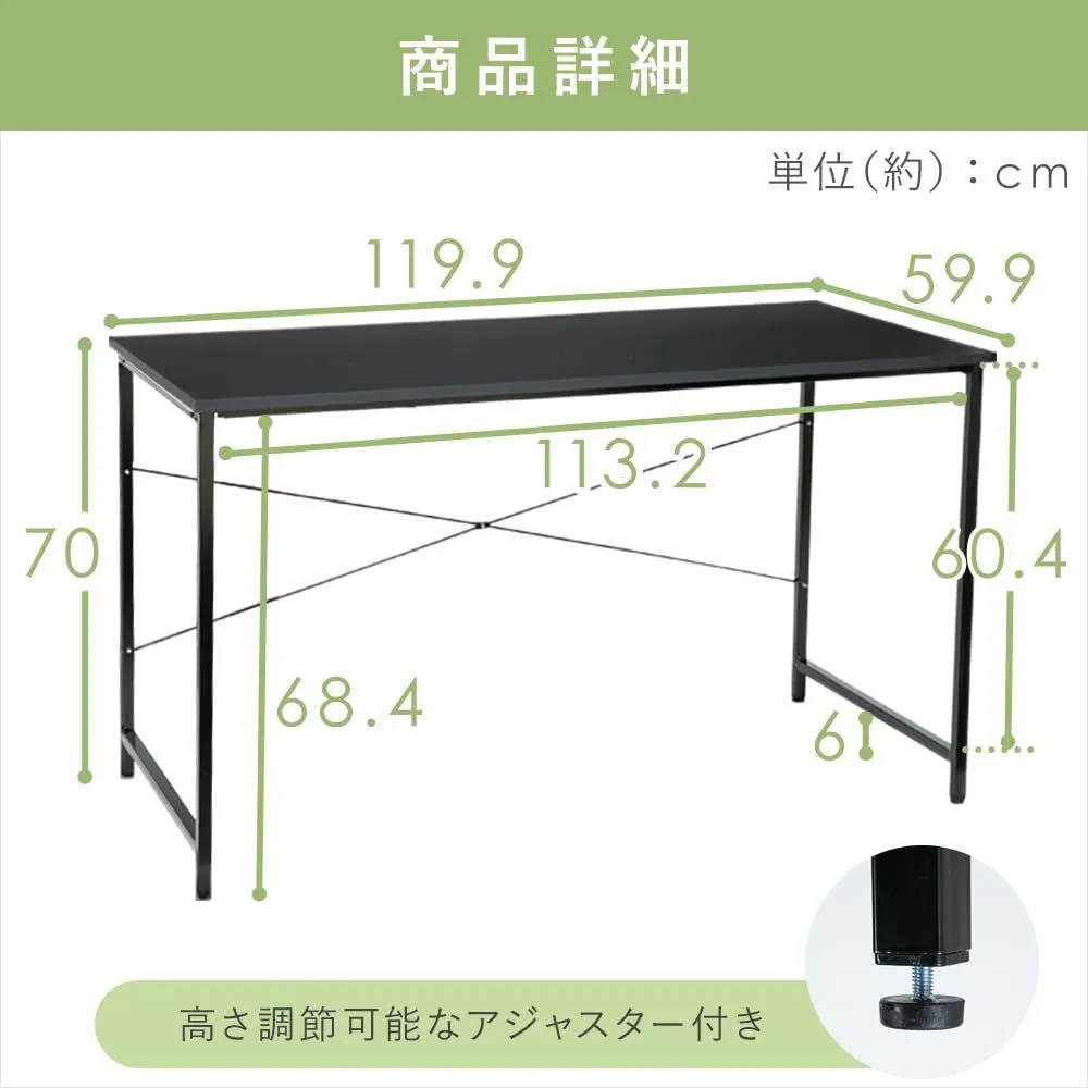 ◆POINT4 安心して使える安全設計。色々なものを置ける、安心の耐荷重。 商品サイズ(cm):幅約120×奥行約60×高さ約70 商品重量:約13.9kg 耐荷重(天板):約50kg 材質:天板・合成樹脂化粧パーティクルボード(メラミン樹脂)、フレーム・スチール(エポキシ粉体塗装)※耐荷重は測定値であり、値ではありません。 最後までご確認頂き誠にありがとうございました。 上記をご確認頂き、ご購入いただけましたら幸いです。 何かご不明な点がございましたらお気軽にメッセージからお問い合わせ下さい。