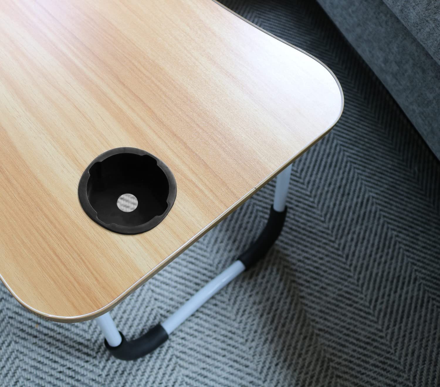 【人気商品】幅60×奥行40×高さ26.5cm タブレットスタンド付き コンパクト 耐荷重10kg ドリンクホルダー付き ソファでお仕事 持ち運び便利 ノーマルサイズ 折りたたみガジェットテーブル ブラウン ONE) 60122 トレードワン(TRADE
