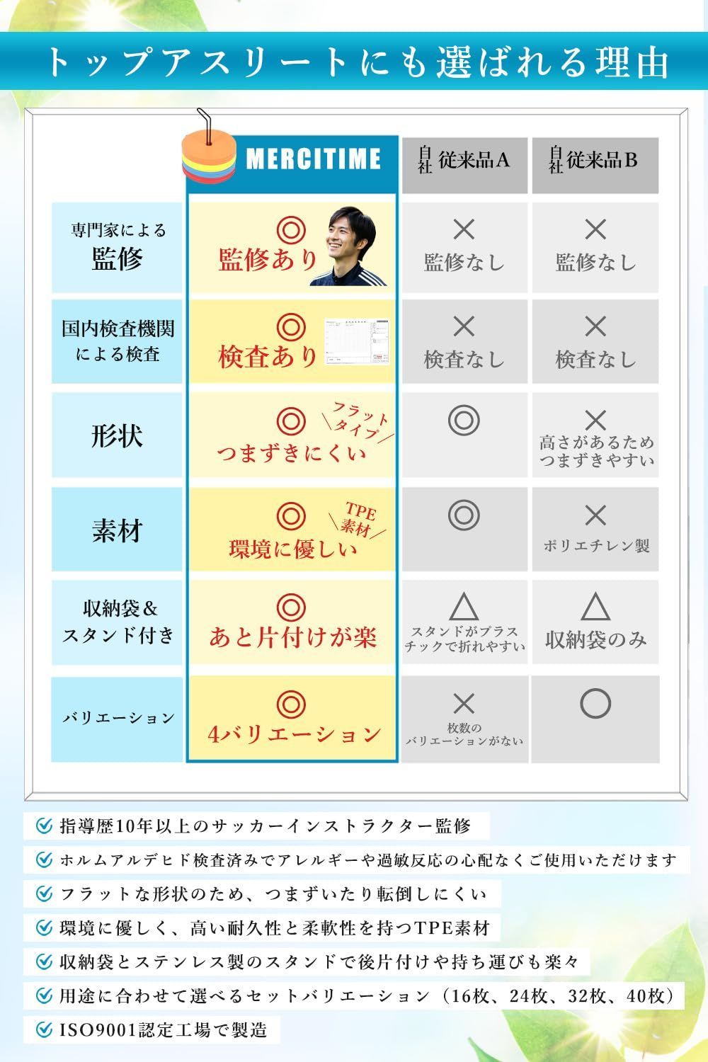 【用途に合わせて選べる豊富な4バリエーション】12枚、24枚、32枚、48枚の4つのセットバリエーションをご用意しました。個人練習からチーム練習まで、様々なシーンに合わせて最適な枚数をお選びいただけます。また、カラーは視認性の高い4色展開で、フィールドの境界線やサイドラインなど、用途に合わせて使い分けることができます。 最後までご確認頂き誠にありがとうございました。 上記をご確認頂き、ご購入いただけましたら幸いです。 何かご不明な点がございましたらお気軽にメッセージからお問い合わせ下さい。
