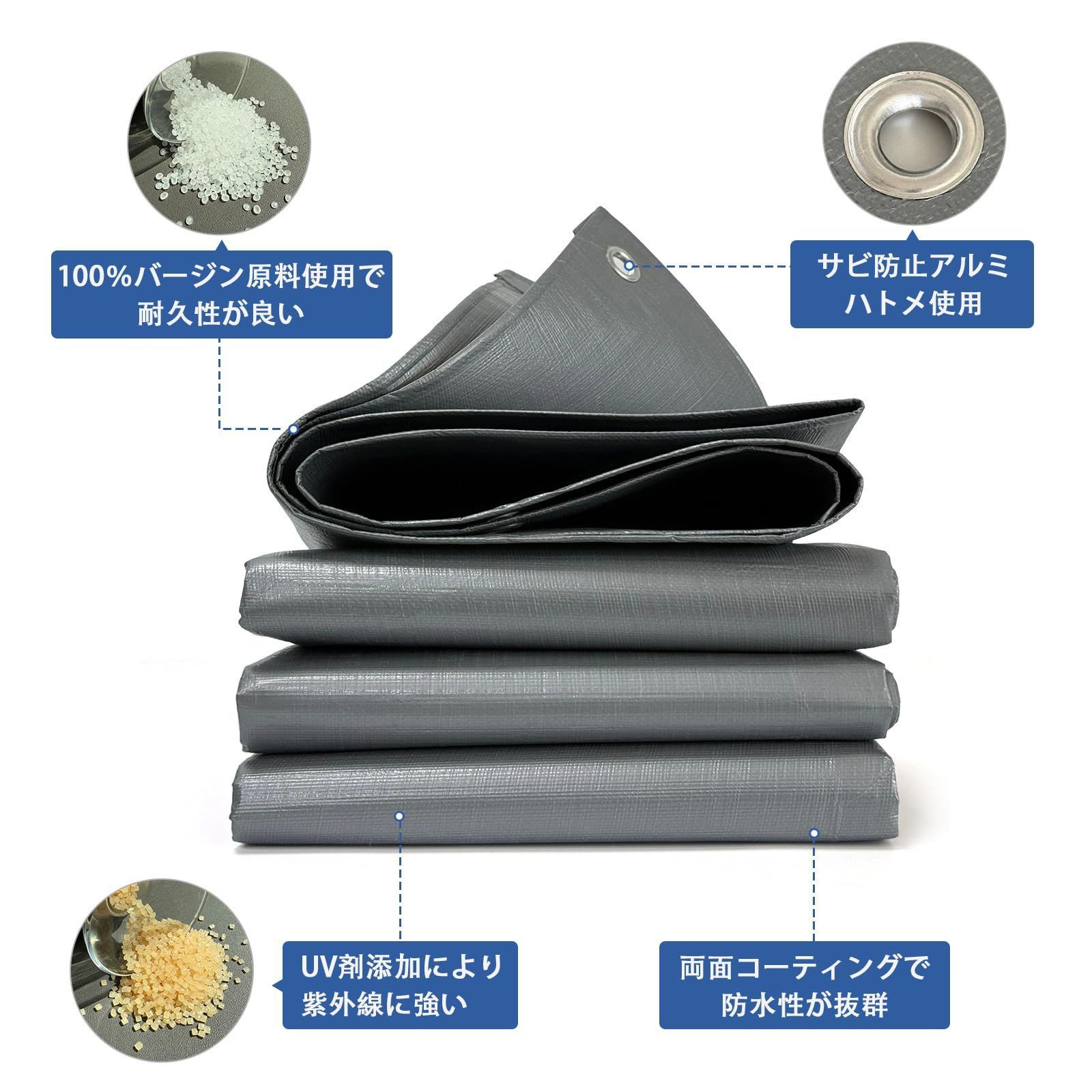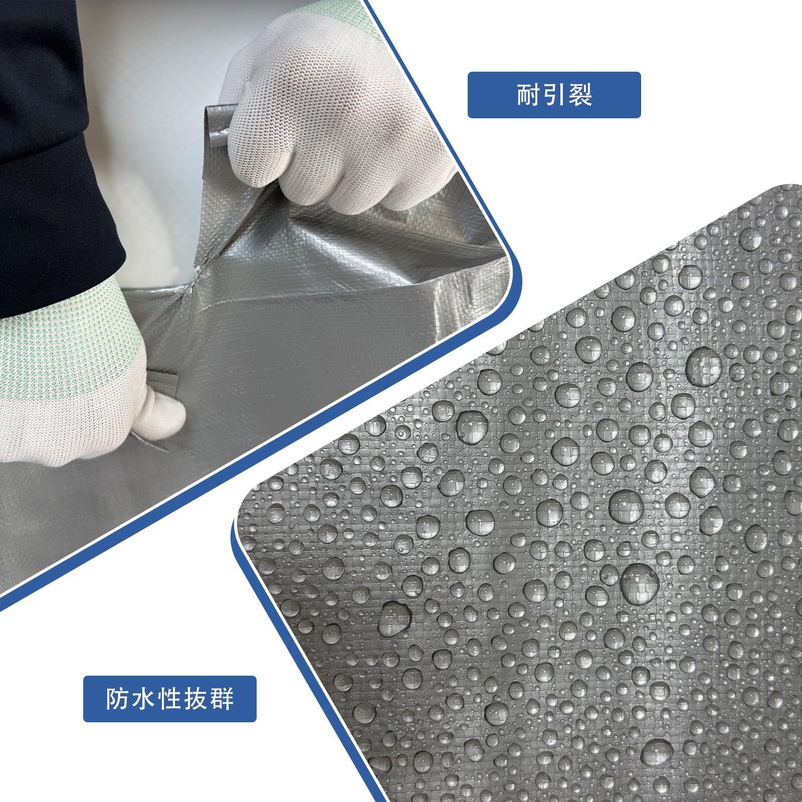 商品特徴:原料PEポリエチレン全新料で 厚手 #4000 使用して、物理的な刺激に強く、鋭物でも破れにくい高耐久と高耐磨性の仕様となっています.防水シートとして台風や豪雨時から内部の荷物を防護します. 厚手で丈夫な素材で、破れにくく、繰り返し使用可能です.