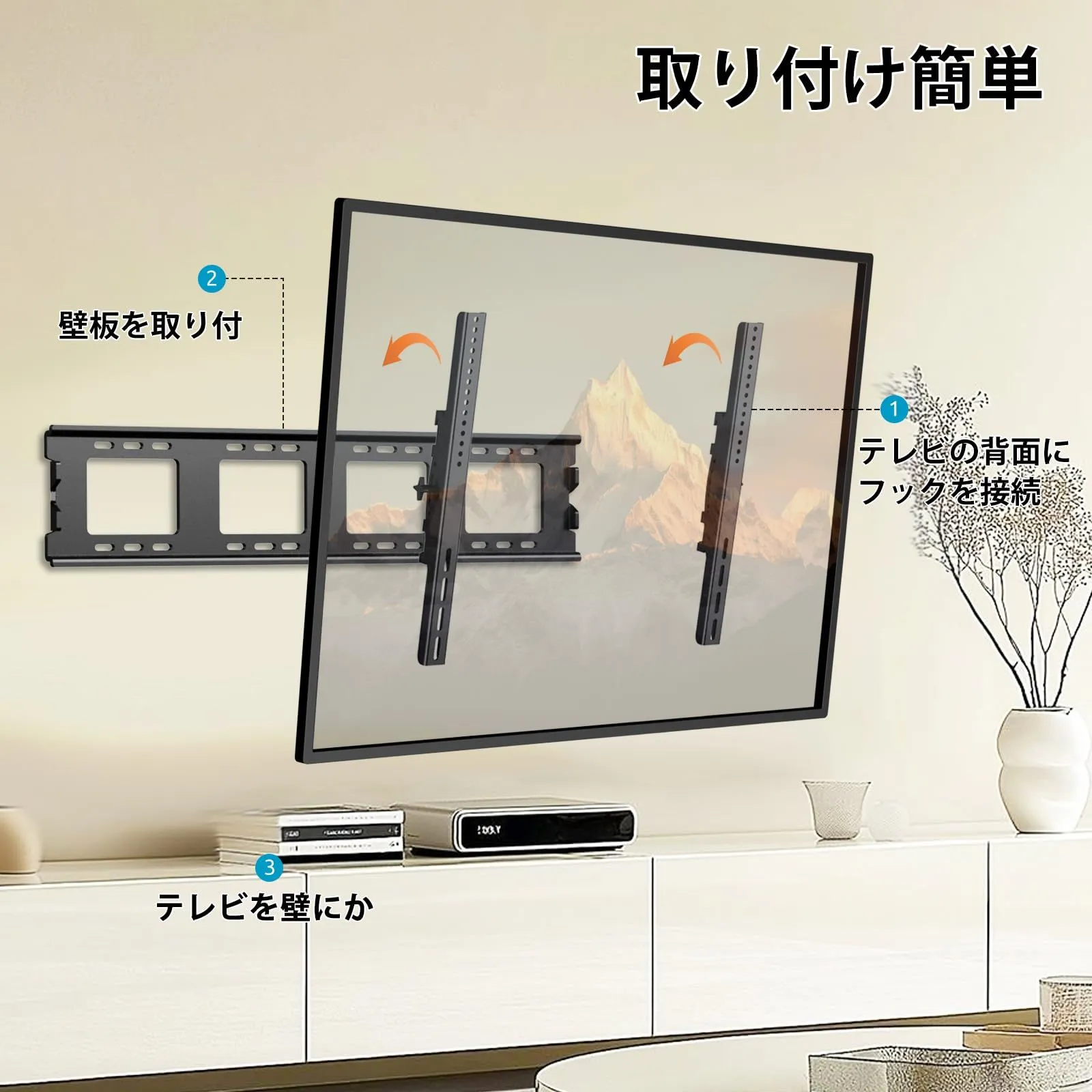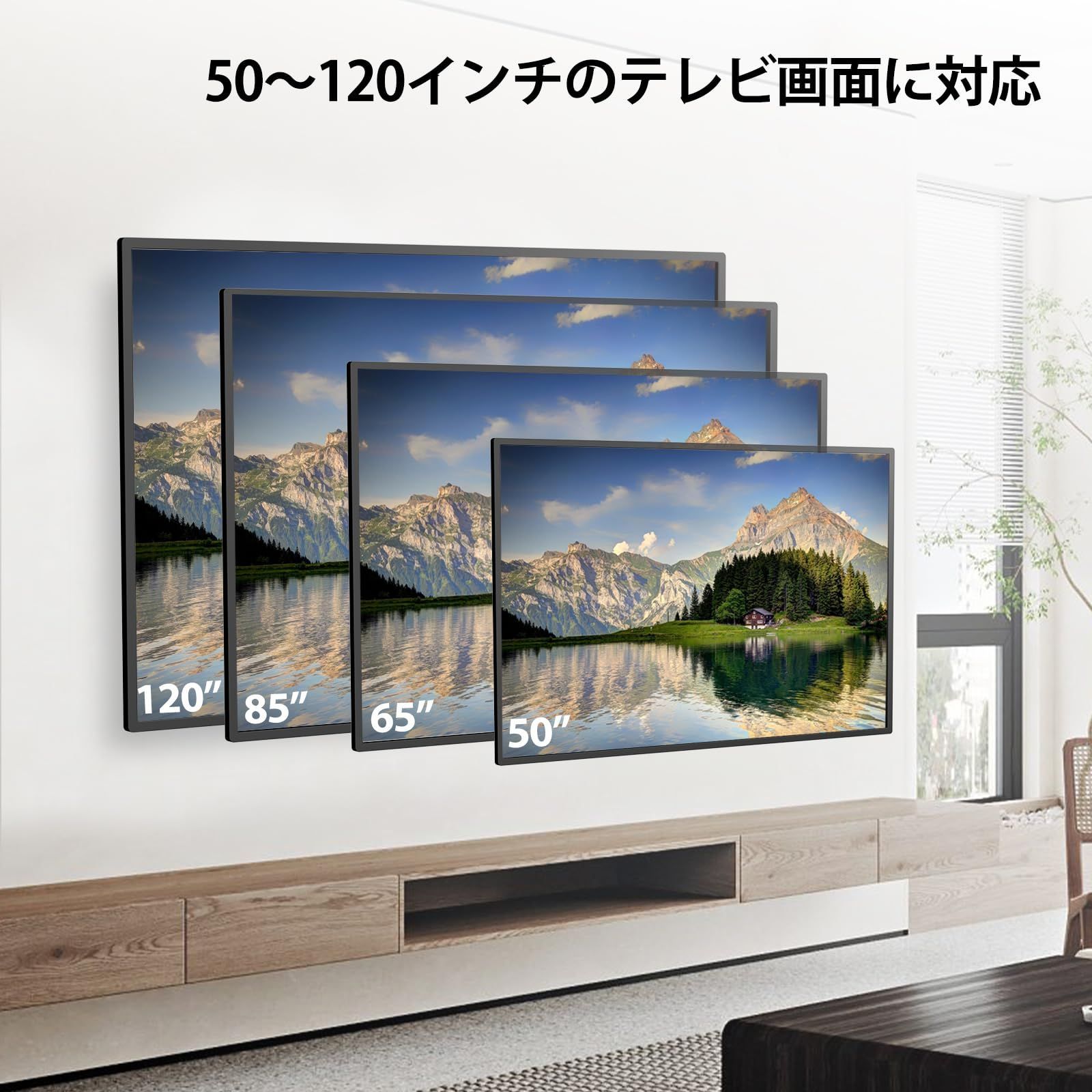 【幅広い互換性】50~120インチ(LED、HD、QLED、OLED、UHD、4K、曲面、スマートテレビ)テレビのような主要ブランドと理想的に互換性があります。TVサイズ対応:50型、55型、60型、65型、70型、75型、80型、85型、90型、95型、100型、110、120型。