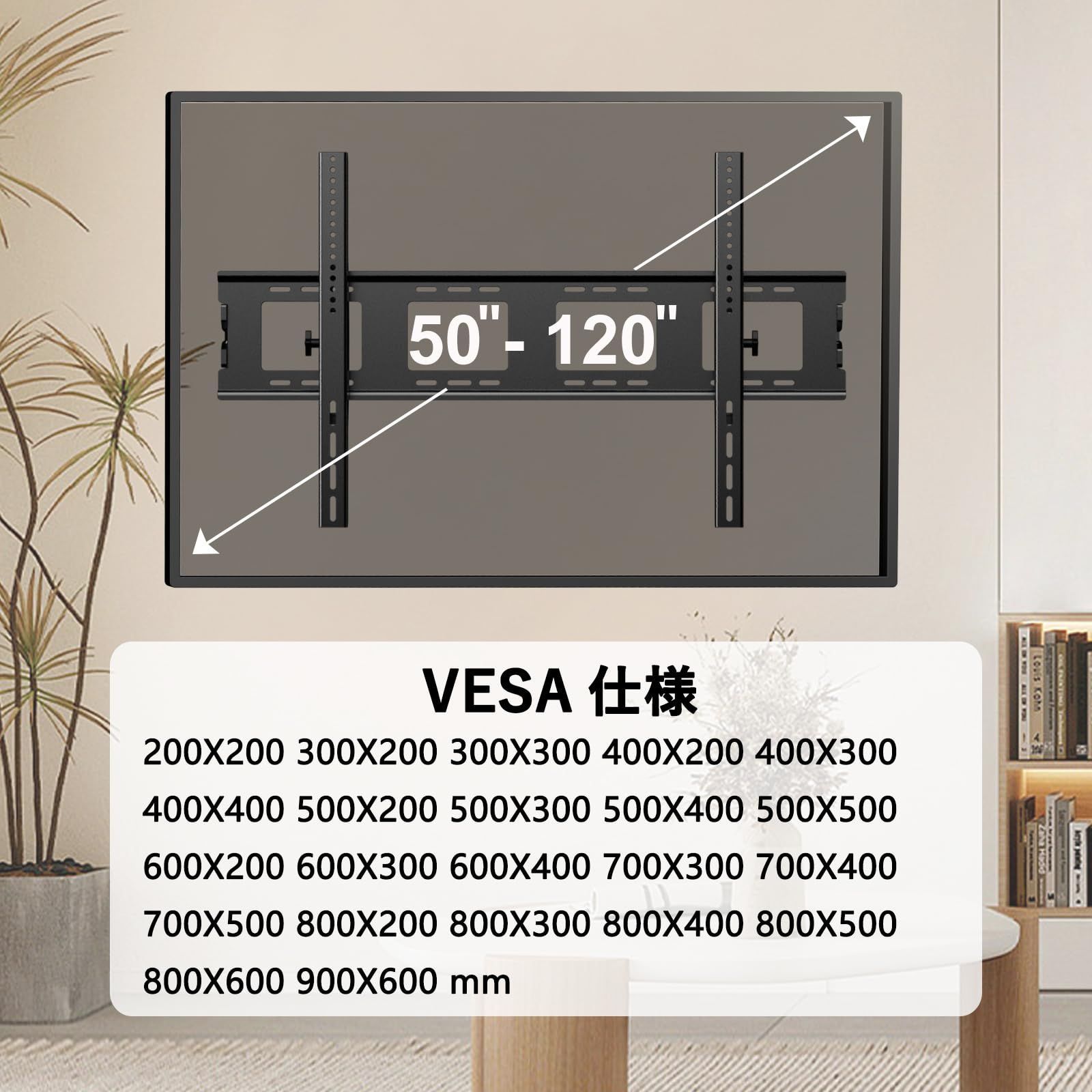 大型テレビ壁掛け金具 50-120インチLCD/LED/OLED液晶モニター対応 可?斜式上下15度角度調節可能 TV壁掛け用部品 耐荷重120kg VESA規格 200x200-900x600 mm tv固定ウォールマウント金具 65 70 75 80 85 86 90 98 100 110型