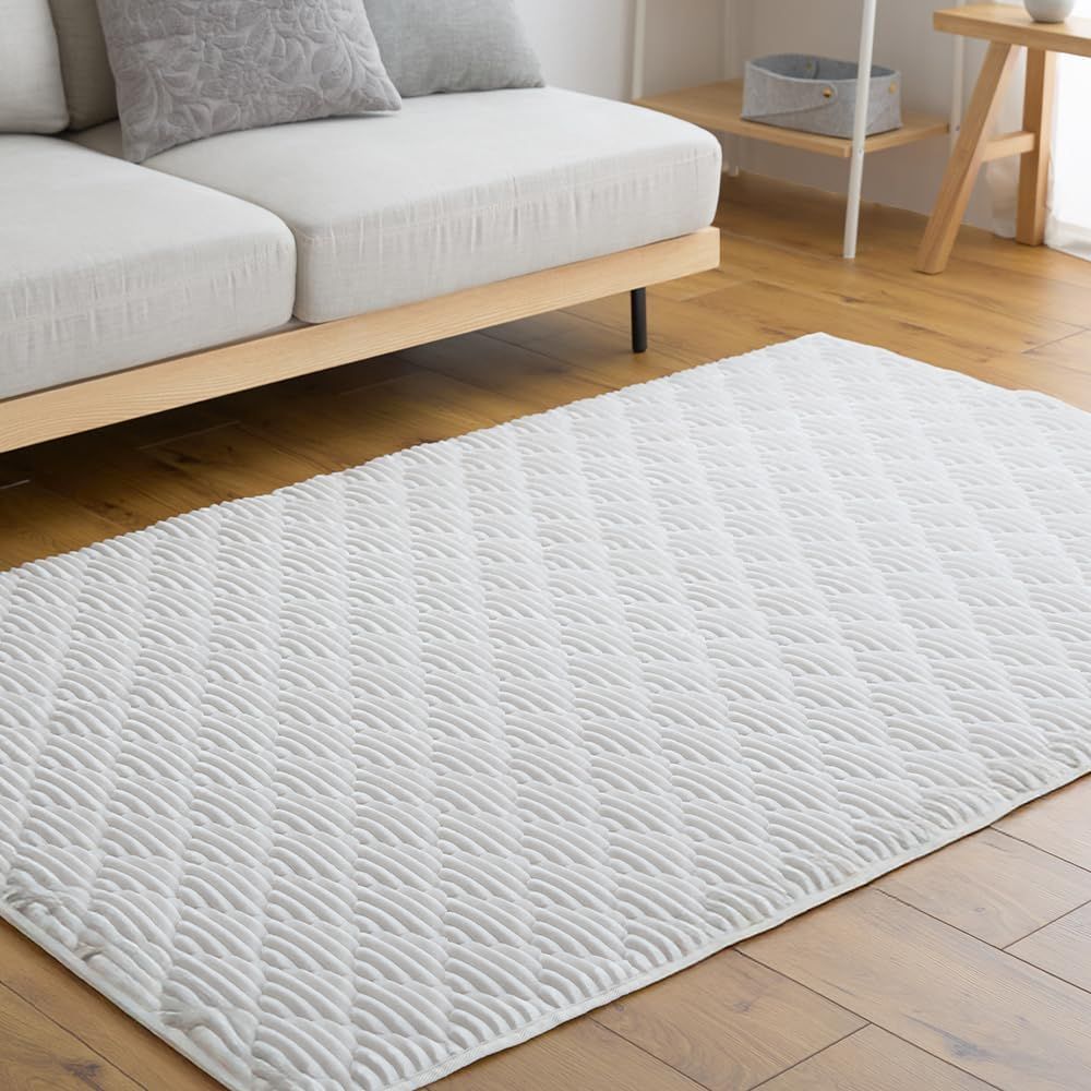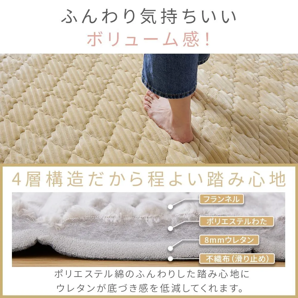 ふんわり滑らかな触り心地で気持ちいいボリューム感のラグ。ダイヤモンド模様のかわいいキルティング。おうちで洗えていつでも清潔。